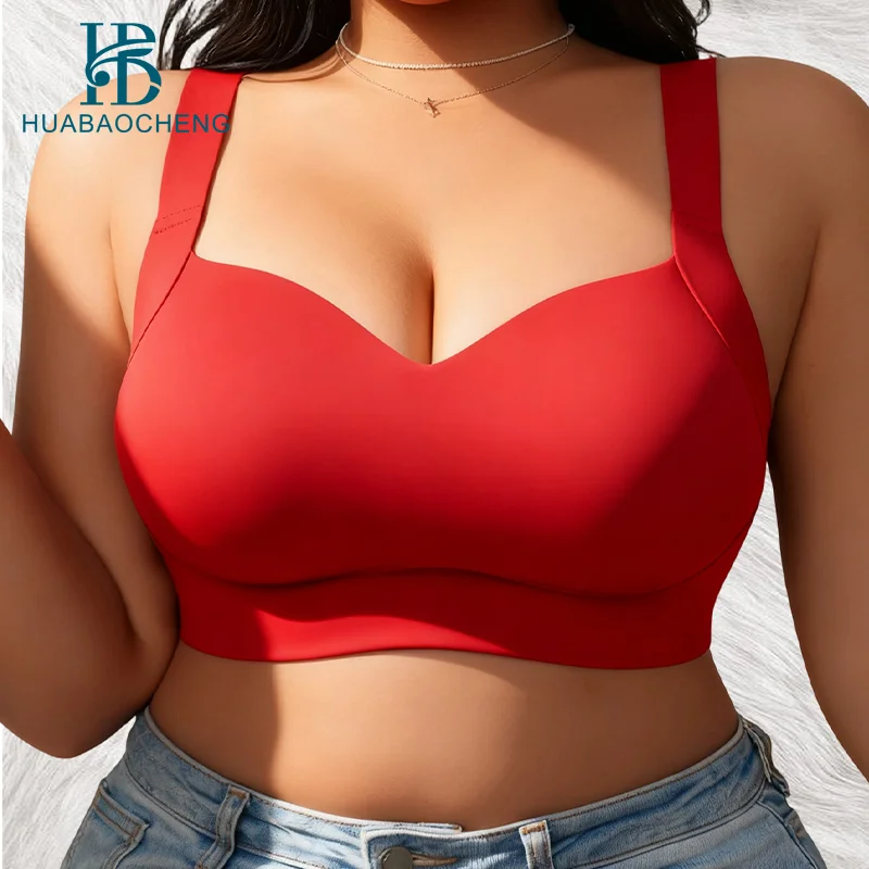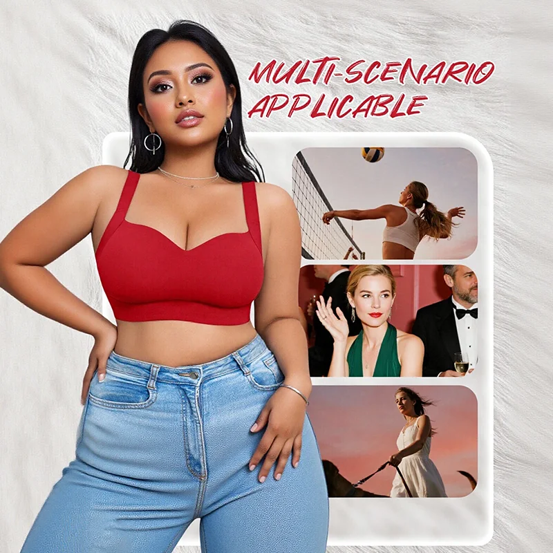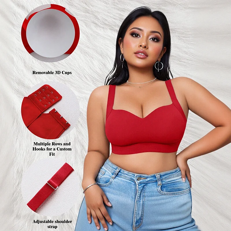 Plus Size Solid Summer Everyday Sports Bra for Women Wireless Seamless Full Cup-Push Lift Back Support Breathable No Steel Ring
