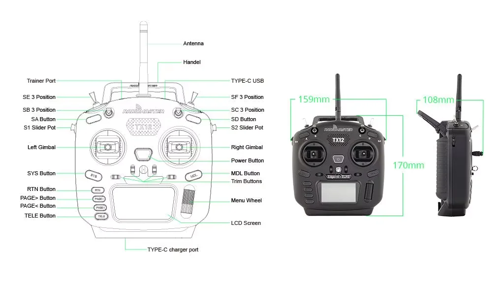 Product name RadioMaster TX12s MKII Remote Control