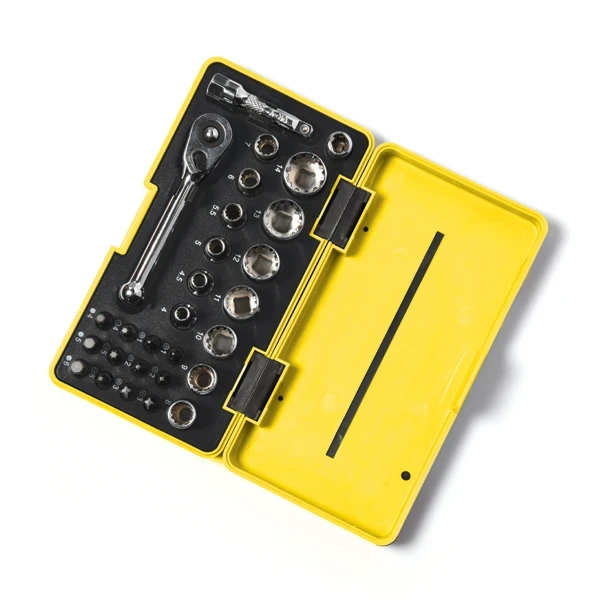 A pocket socket set is a small, portable set of sockets that is designed to be carried with you on the go. It typically includes a variety of sizes of sockets, as well as a ratchet, extension bars, and a carrying case. Pocket socket sets are ideal for use in a variety of situations, such as: · · · Forged Chrome Vanadium steel for superior strength & durability. · · Sure drive system applies torque to the flat of the nut rather than the corners to avoid rounding off. · · Robust and compact case for convenient storage · · High quality chrome vanadium sockets · · Convenient ratchet handle · · Organized storage case