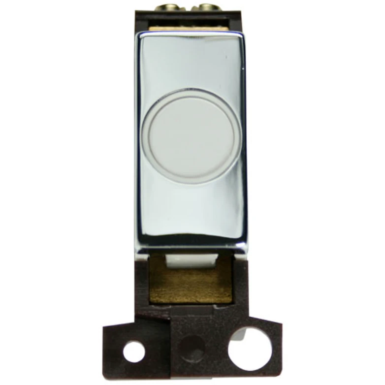 Mingrid polished chrome 20A click white ingot flex outlet module. · · · Dimensions 25mm (W) x 56.5mm (H) x 30mm (D) · · Aperture Dimensions 32mm (W) x 31.5mm (H) · · Finish Polished Chrome · · Flex Outlet Click White · · Blank: Urea · · Rear Housing: Nylon · · Maximum Voltage 250V 50Hz · · Load Rating 20A · · Terminal Size 3.5mm · · Terminal Torque 0.4Nm