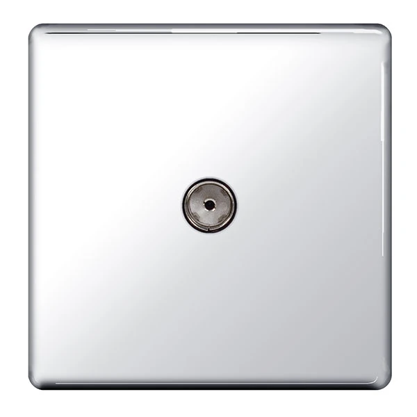 Polished Chrome Flatplate Screwless 1 Gang Co-Axial Socket