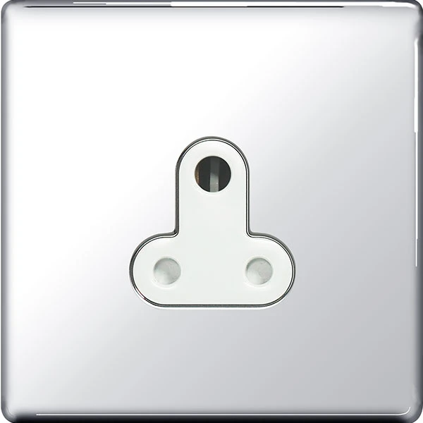 Polished Chrome Flatplate Screwless White Insert 5A Round Pin Unswitched Socket