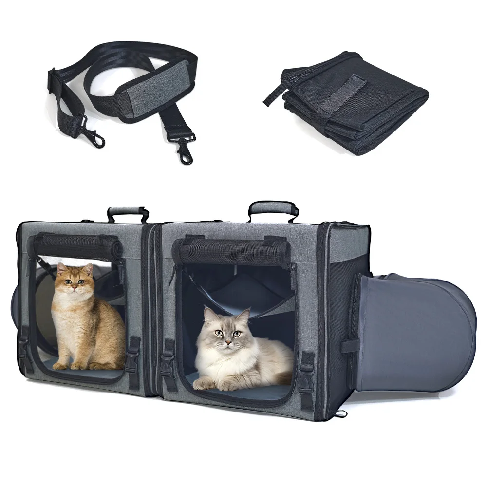 Portable 2-in-1 Cat Travel Carrier Foldable Flannel Cushion Collapsible Pet Tunnel for Multiple Pets Household Travel Accessory