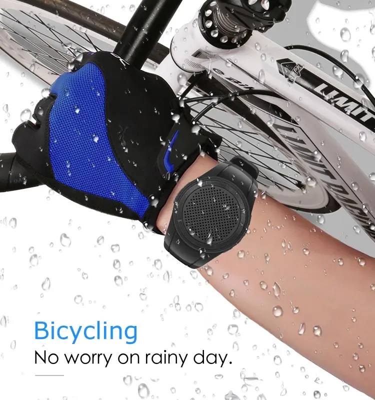 IP45 Waterproof Wearable Bluetooth Speaker Portable Bluetooth Speaker Watch with LED Flashing Light for Indoor Outdoor Activities Wearable Speaker Speaker Watch ****Ultra Portable as A Watch, Take Your Tunes Everywhere . Watch type Bluetooth speaker gives you the convenience you are looking for. Strap it on and let music be with you everywhere – it’s that easy! Best for walking in the park, running, jogging, bicycling, climbing, hiking, kids, Marathon race, people “on the go”, working, house cleaning, gardening… You could find a reason to own it. **** This watch type wearable speaker allows us to hear the surroundings when listening to the music, more safe than earbuds. ****Multifunctional Watch with LED Flashing Lights. Support Bluetooth speaker, IP45 Waterproof, LED flashing lights, MP3 Player, hands free calls, TF card playing, selfie shutter, 1 key to Bluetooth pairing mode. Allow to skip songs and control volume on the wrist. 6 switchable led flashing light inside enhance your night exercise experience. ****The Wireless Experience. Put tangled wires behind you. You could wirelessly stream music through any Bluetooth enabled devices via Bluetooth connectivity; or you could play music from a micro SD card(not included), get rid of cell phone at workouts. **** Click Mode button to activate Siri & Google Assistant without getting your phone out. ****Wristband designed for all ages. Soft adjustable wrist band. ****IP45 waterproof allows to run in the rain. Details Images IP45 WATERPROOF The X10 is certified waterproof. By choosing this product, you can run in the rain now. WEARABLE BLUETOOTH SPEAKER More portable than earbuds. Don’t worry fall down. Hear the surroundings. More safe than earbuds. MUSIC + CALLS WHEREEVER YOU GO Bluetooth or TF card(not included) to play music. Built-in microphone support handsfree phone calls. BIG SOUND, SMALL DESIGN Wrist speaker provides studio-quality sound with its N52 neodymium audio driver. SIRI & GOOGLE ASSISTANT Click Mode Button to Activate Siri & Google Assistant Without Getting your Phone Out TWS BLUETOOTH SPEAKER Two speakers play music together, enjoy stereo music. Product Usage RUNNING WITH MUSIC GYM FITNESS WITH MUSIC INDOOR FITNESS WORKOUT SPEAKER YOGA FITNESS SPEAKER WALKING / WALKING YOUR DOG WITH MUSIC CAMPING WITH MUSIC BIKING WITH MUSIC HIKING WITH MUSIC MARATHON WEARABLE SPEAKER SKATEBOARDING WITH MUSIC SCOOTER SPEAKER PLAY GOLF WITH MUSIC FISHING RELAX WITH MUSIC Packing&Shipping