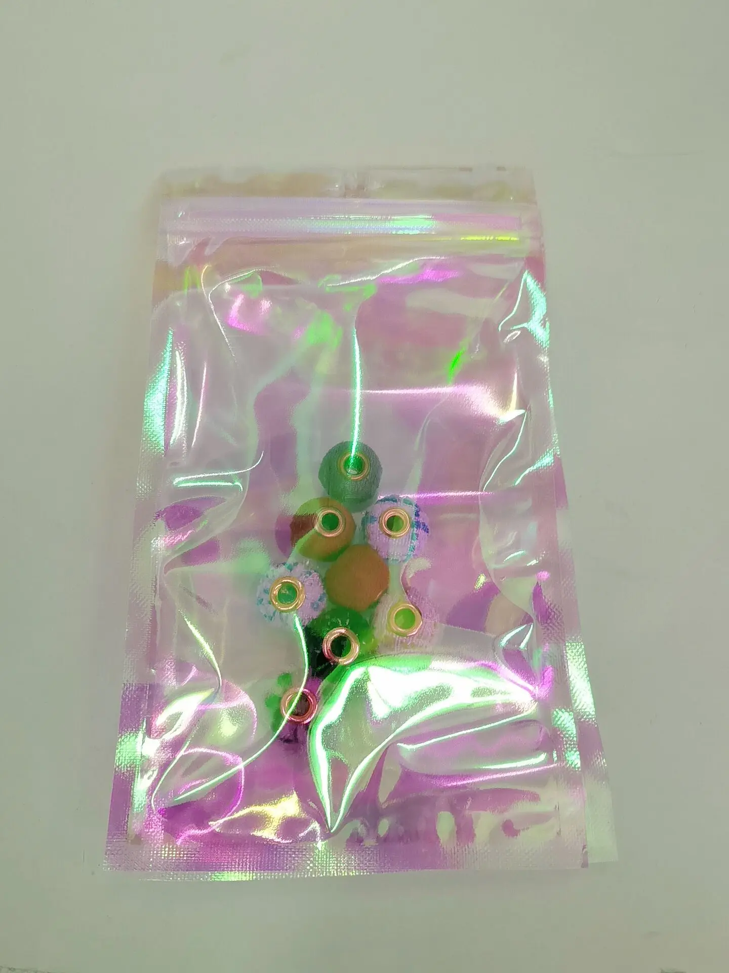 Zipper bag Model No HE-BZD008-9*12CM Color Rainbow Color packing 100pcs/bag MOQ 1 bag if we in stock, if not ,MOQ is 10bags view more >> Similar Items Mini Size 100pcs/bag 6*10cm Water-Proof Ziplock Pouches Rainbow Color Laser Zipper Bags for Jewelry Earring Ring Packaging.
