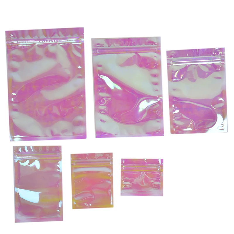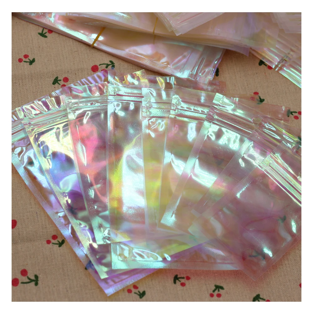 Premium 100pcs 9*12cm Resealable Smell Proof Laser Zipper Bags for Cosmetic Jewelry Pendants Packing-Slide Ziplock