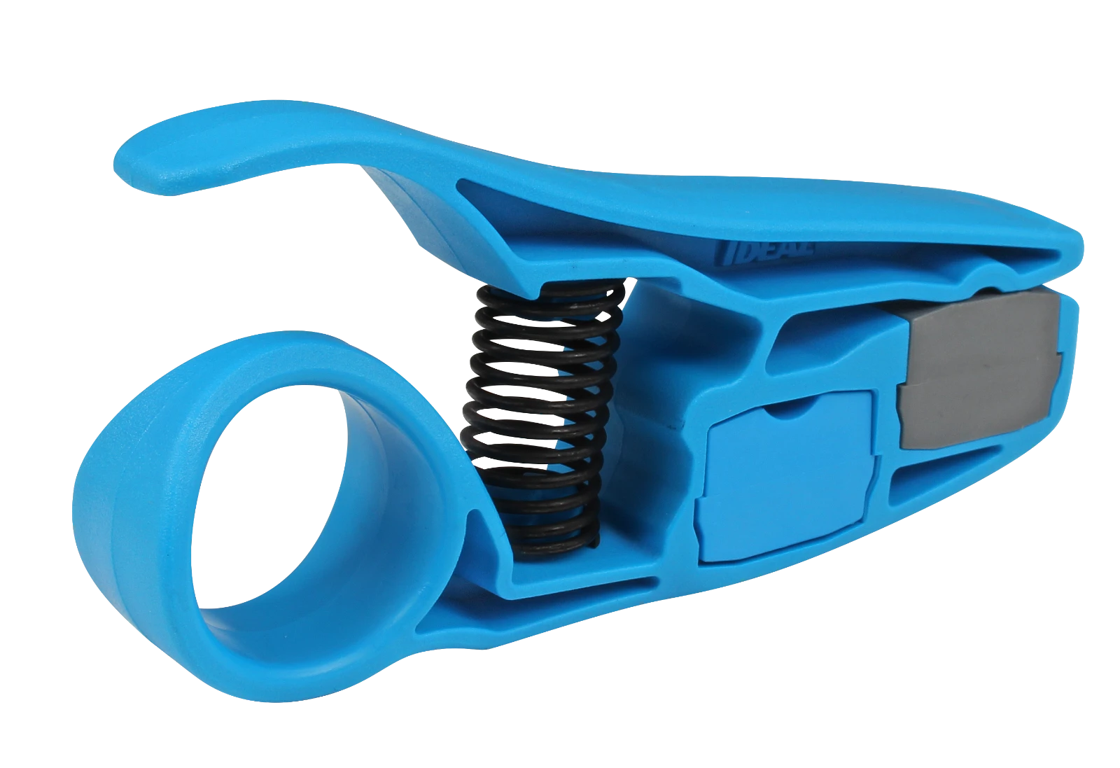 The PrepPRO combination Coax/UTP prep tool strips a wide range of coaxial cable types with no adjustments or settings required to the tool. The PrepPRO can strip RG-59 and RG-6 in regular, quad, and all plenum versions without adjusting anything on the tool. No need to adjust blade depths or tool settings. Factory preset for immediate out-of package use. The PrepPRO gray coax cartridge has 2 fixed blades, including a new notched blade, to provide an industry standard ¼ inch x ¼ inch cable prep, which leaves ¼” of conductor exposed and leaves ¼ inch of shielding exposed. This is the standard required strip length for all IDEAL compression, crimp on, and twist on connectors. · · · Fixed blades require no adjustments to do a wide range of cable types · · Provides a ¼ inch x ¼ inch industry standard coax strip (gray cartridge) · · Works on RG-59/RG-59 Plenum/RG-6/RG-6 Plenum/RG-6 Quad/RG-6 Quad Plenum · · Fixed blade depth, replaceable cartridges available · · Provides an industry standard ¼” x ¼” cable prep · · Grey cartridge contains fixed coax blades to strip 8 types of cable with no adjustments to the tool