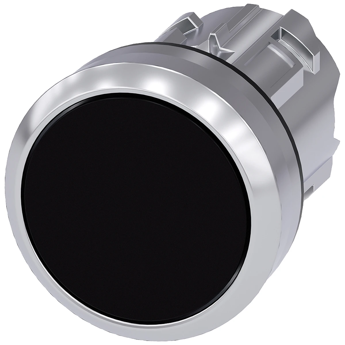 Siemens standard round pushbutton made up of a plastic actuator surrounded by a high gloss silver colour metal ring. The mounting diameter is 22.3mm whereas the actuating element has a 29.5mm diameter. · · · Manner of function: Momentary · · Type of unlocking device: None · · Mechanical sevice life: 10000000 cycles · · Maximum operating frequency: 3600 1/h · · IP66/67/69 Degree of protection · · Vibration resistance: 5g (10-500Hz) · · Shock resistance: 50g · · Ambient temperature: -25 to 70°C