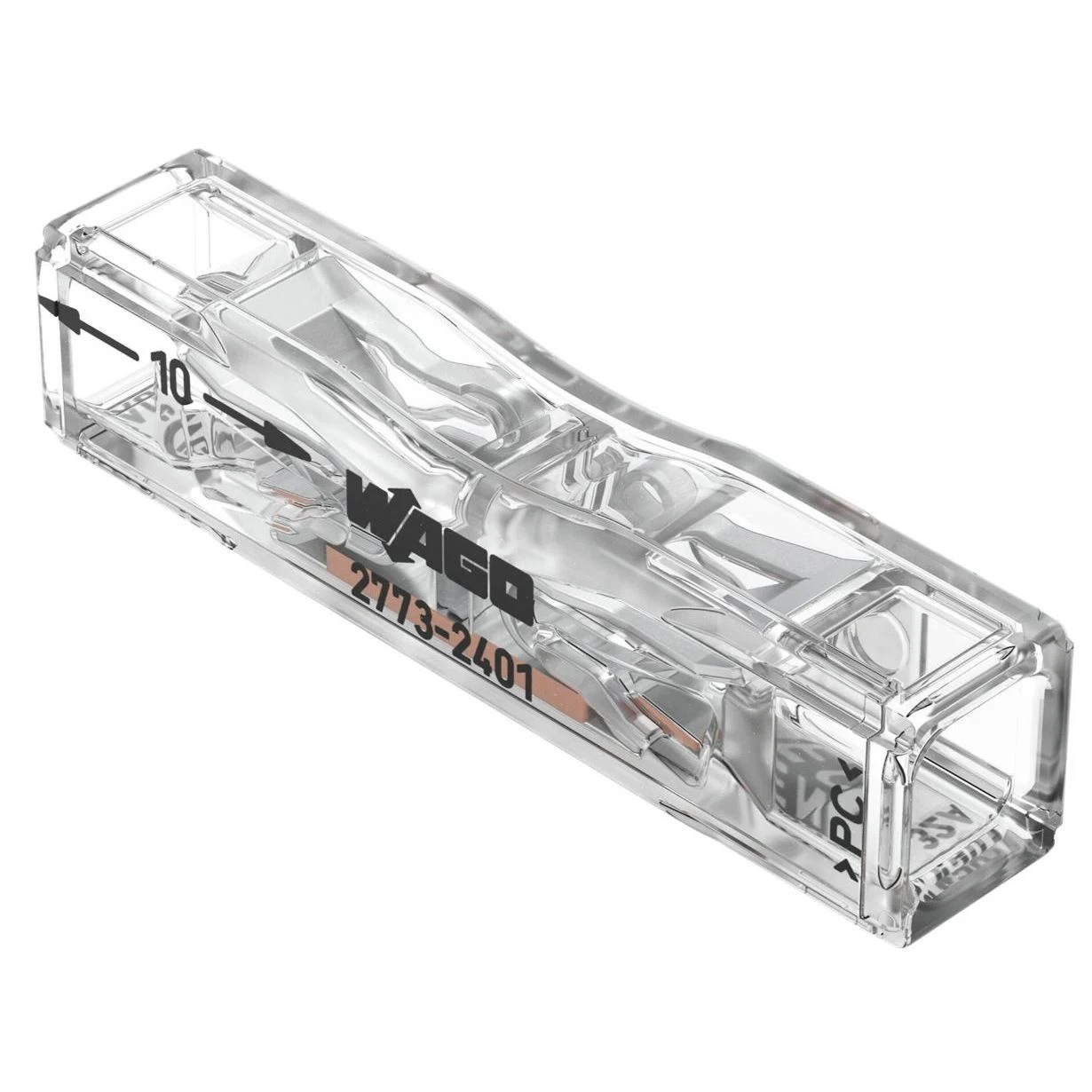 The plug-in through connector is the perfect product for connecting wires in the smallest of spaces. There are many possible applications for plug-in through connectors, be it a wire that is too short in the flush mounting box to extend whole lines or repair damaged lines. You can use the plug-in through connector to connect electrical wires easily, quickly and safely to the smallest possible space, and completely without the need for tools. During repair, the connector can be used flush mounting thanks to maintenance-free spring technology with a suitable shrink hose and thus becomes a real problem solver and indispensable assistant. Thanks to its short and compact design, several passage connectors can be arranged one after the other to save space. · · · Slim design saves space in tight areas · · Tool-free connection and disconnection · · Use a mounting carrier for fixed and multi-pole wiring · · Ratings per: EN 60664 · · Nominal voltage (II/2): 450V · · Rated current: 32A · · Stranded and solid conductors up to 4mm