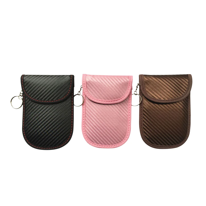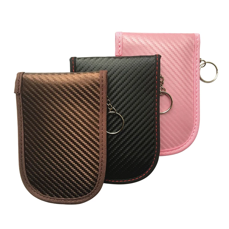 QRF-09 Carbon Fiber Leather RFID Car Key Signals Blocker Case with key hook keyless car theft Pouch Faraday Bag Product Features *Brand Carbon fiber rfid blocking car key faraday bag *Style Fashion&Casual *Model QRF-09 *Material Type PI leather *Colors Black, pink and brown *Package Simple opp bag, or customized box *Customized Silk print, embossed, non woven tag, etc *Characteristic Compact, anti theft Detailed Images 2 pockets, one is normal, and the other with RFID blocking function Slim size, can put into pocket, or hang on your bags 3 colors as choice Production process Recommended by seller Fashionable Anti-Theft Carbon Fiber Faraday Bag Anti-Hacking Case with RFID Signal Blocking for Car Key Fob Anti-Theft Pouch.