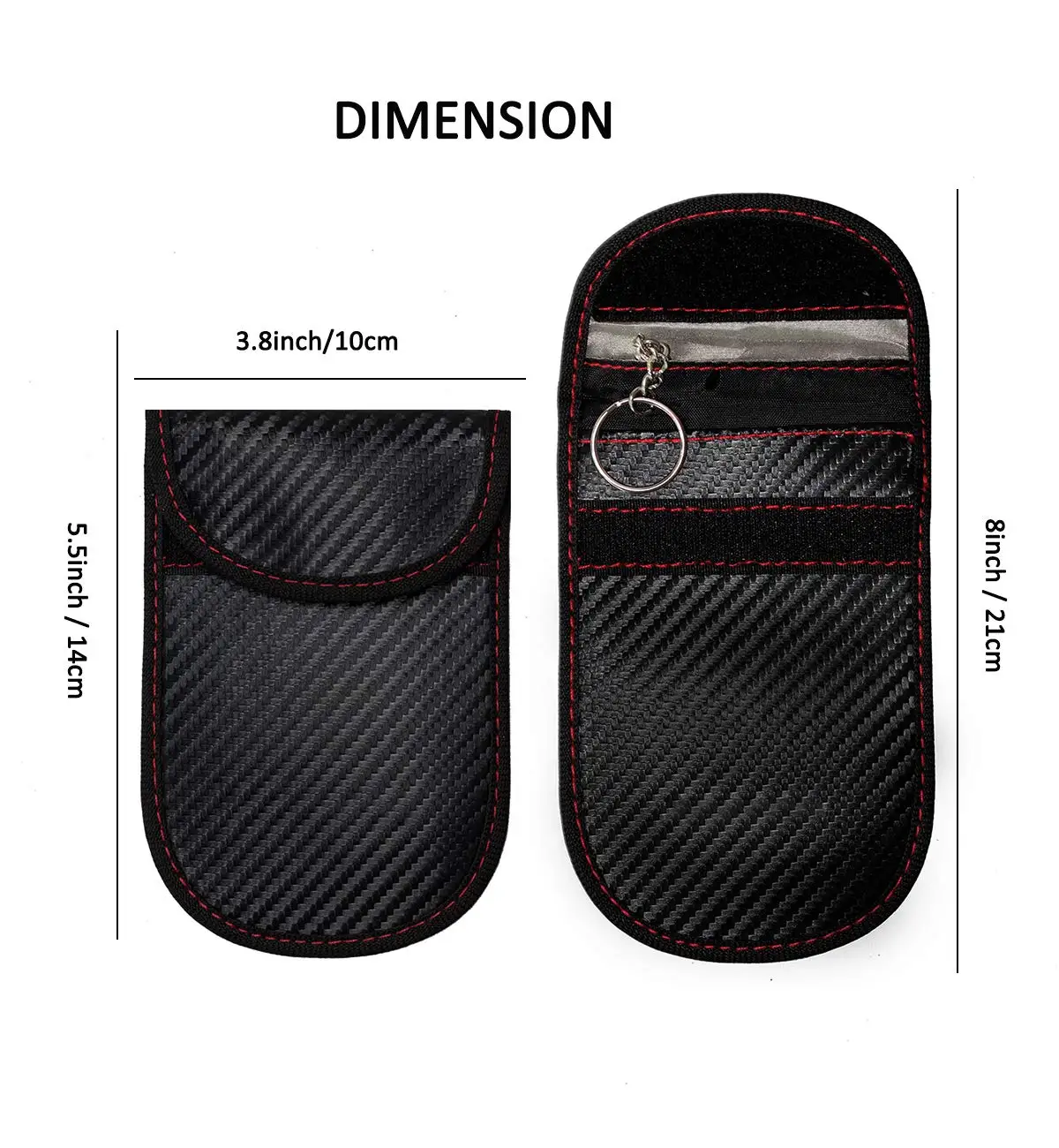 QRF-09 Carbon Fiber Leather RFID Car Key Signals Blocker Case with Key Hook Keyless Car Theft Pouch Faraday Bag Pack of 100