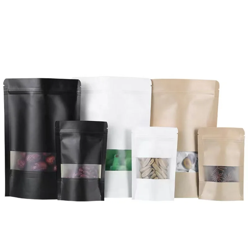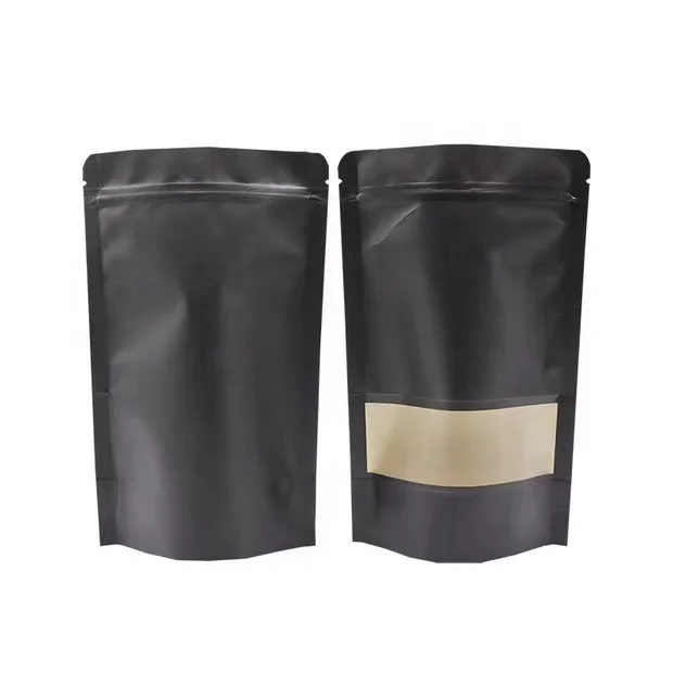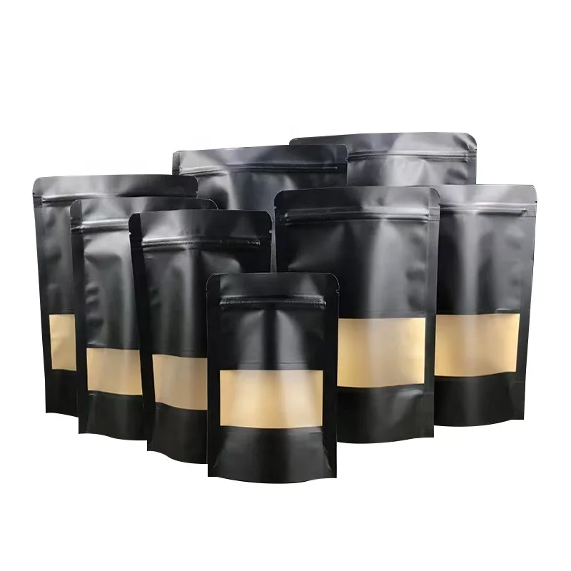 Ready to Ship Doypack Zip Lock Matt Black Craft Standing up Pouches Food Packaging Zipper Paper Kraft Bags With Window
