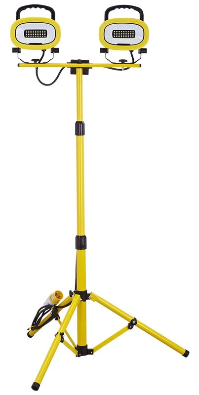 The twin head 110V LED Work Light with Tripod is 2 x 18W, has a rotatable head to angle the light as required & is height adjustable to suit both confined & high ceilings in different site conditions. · · · Versatile and portable site lighting · · Includes tripod mount for full adjustability · · Robust construction · · Fully adjustable heads to direct the light where it is needed · · Supplied pre-wired with plug and lead · · Sturdy design to prevent tipping