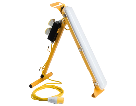 The 20W Weatherguard Site A-Frame has a 2000 lumen output making it a high efficiency 100lm/W non-corrosive, has a 4000K colour temperature & an IK rating of IK07 making it suitable for site lighting applications. The A-Frame makes it easier for relocating the fitting where task lighting is required. · · · Lightweight and easy to relocate on site · · Strong, stable frame · · Supplied with 5m cable and pre-wired plug · · Includes 2x 110V power outlets for connecting more fittings or power tools · · Integral 3 hour emergency options · · Folds quickly and easily for convenient transportation