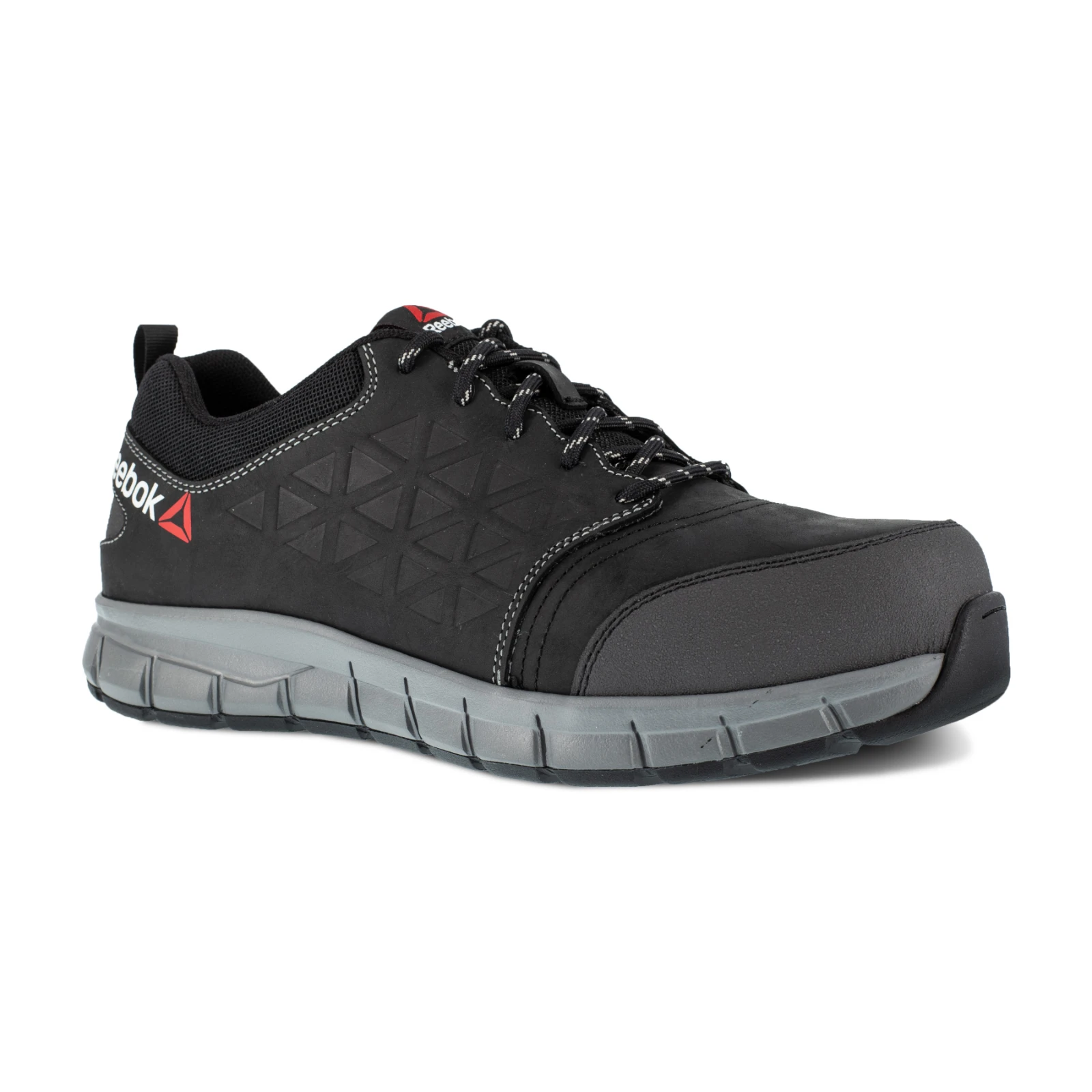 BLA SIZE 7 REEBOK MEN EXCEL LIGHT S3 SAFE TRNR · · · Puncture Resistant Midsole · · EN2034 S3 Aluminium Toe · · Anti-Static · · Water Resistant · · Non-metallic · · Puncture resistant and composite fabric plate is lighter and more flexible than a steel plate while providing maximum protection with 100% foot surface coverage