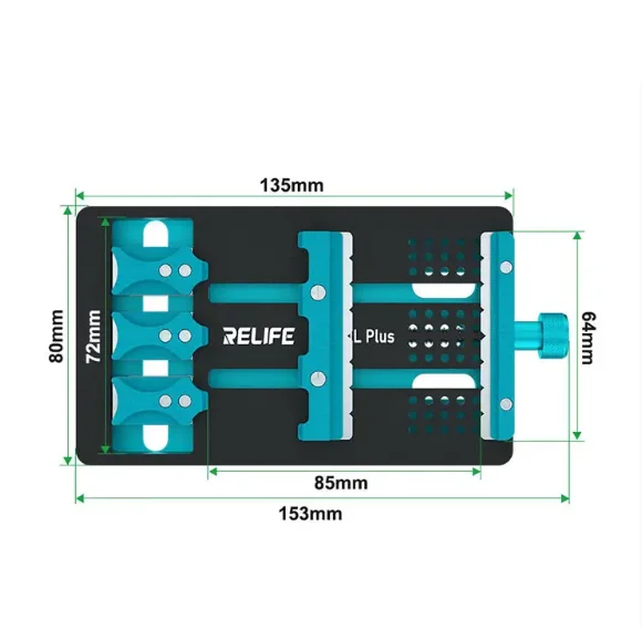 RELIFE RL-601L Plus Mobile Phone Special-shaped Motherboard Repair Fixture Multi-purpose Fixture Soldering Removal Platform Product Description RELIFE RL-601L Plus Mobile Phone Special-shaped Motherboard Repair Fixture 1. Two-way precise clamping.