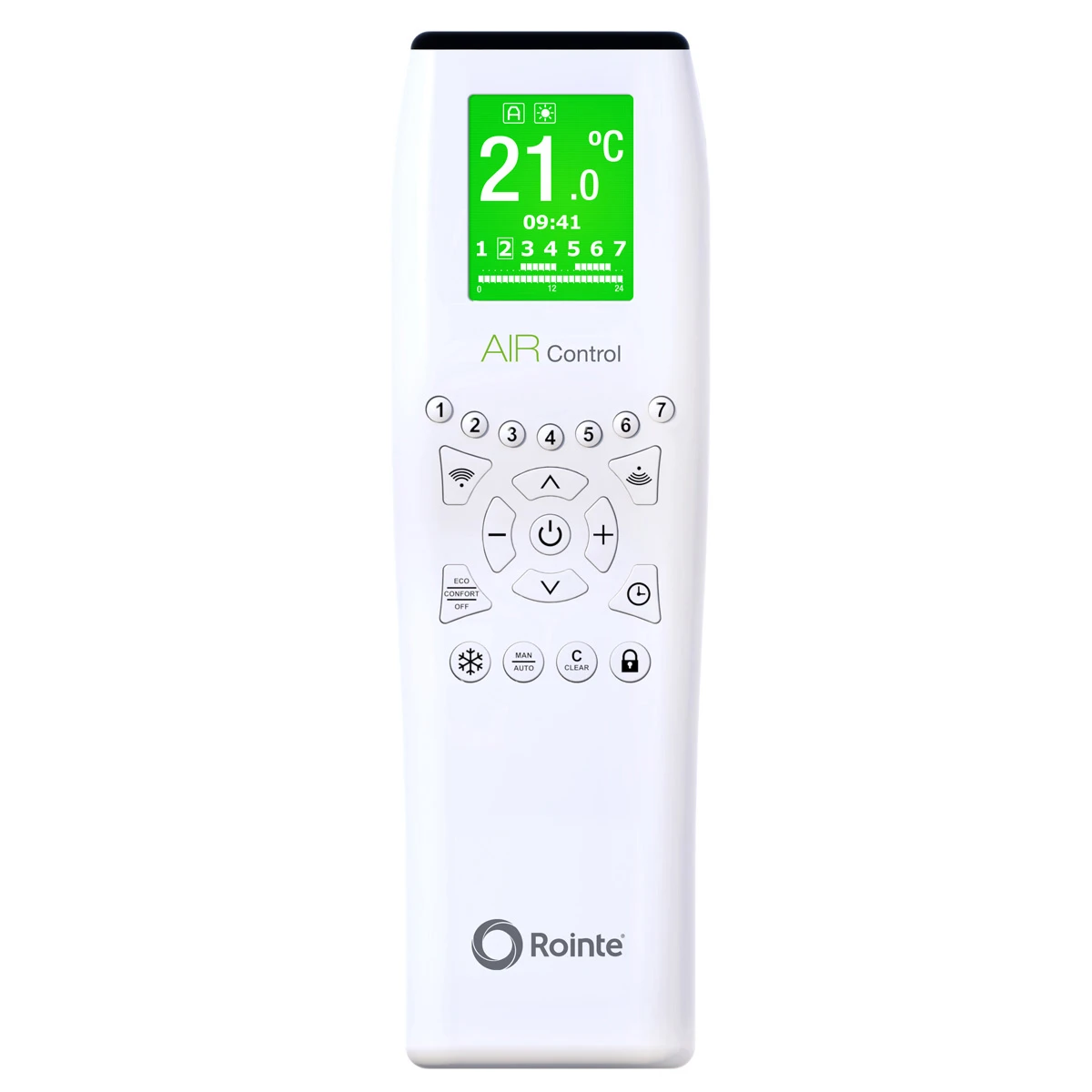 ACMI120 is a Remote Control, born from the need to integrate in the same device the control of all the device that make up the Rointe digital integral heating system, consisting of radiators, towel rails and electric water heaters. This remote control acts as a programming centre, allowing programming of any Rointe heating products and water heaters with infrared port. This AIR control remote control includes a transparent wall bracket, of a modern and elegant design, which adapts to all types of homes or professional centres. This accessory allows you to have the remote control located in the same place, thus avoiding falls and losses. · · · Remote control over Rointe electric heating systems · · Compatible with Rointe Kyros, Sygma and Siena · · Two-way infrared communication – send and receive · · TFT screen · · Compact mechanical keypad · · Transparent support bracket for wall mounting · · Transmitting range: 3m. Receiving range: 1m. · · Heating product screen brightness control · · 24/7 programming capability · · Remote locking of heating product