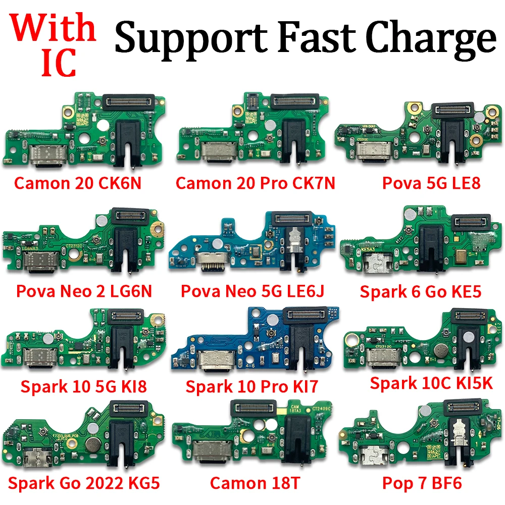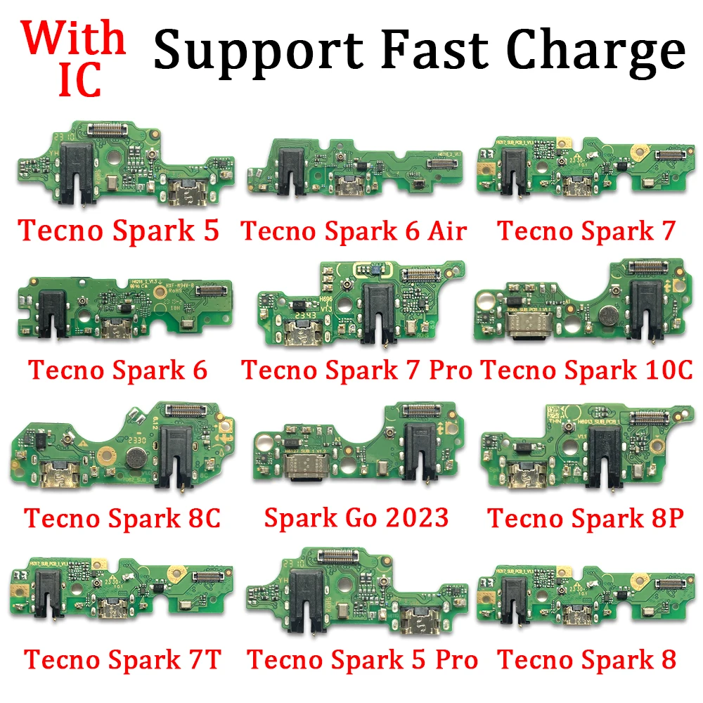 Replacement Charging Port Board for Tecno Pop 7 4 Spark 5 6 Air 7T 8C 8P 8T 10C Go Zero Pro X6811 CK6N CK7N KF7 LE8 Spare Parts Pack of 5