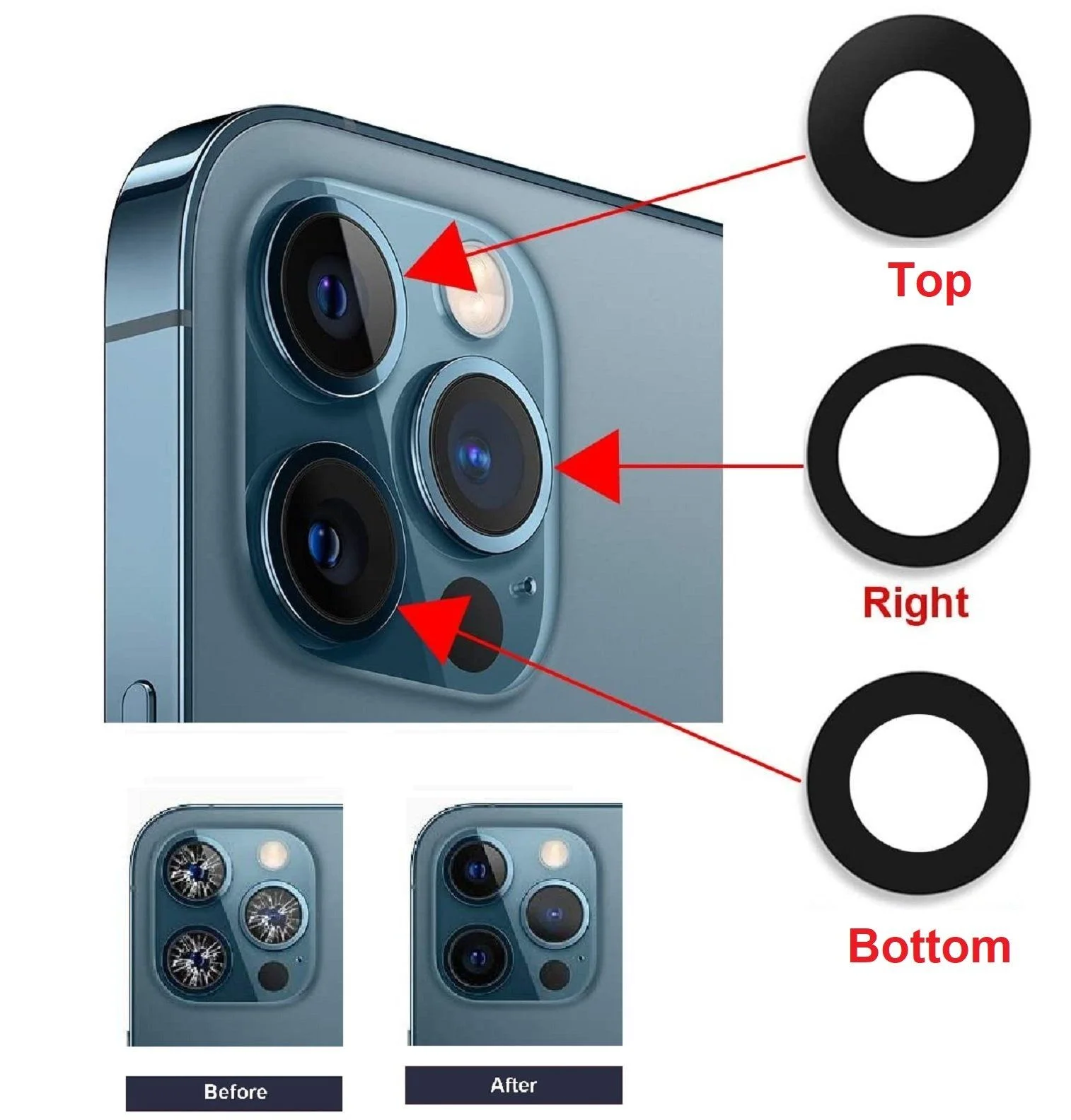 Replacement Rear Back Camera Lens With Adhesive 12 14Plus 15pro Max 16Pro Max Back Camera Glass Lens for Iphone 14Pro Max Pack of 50