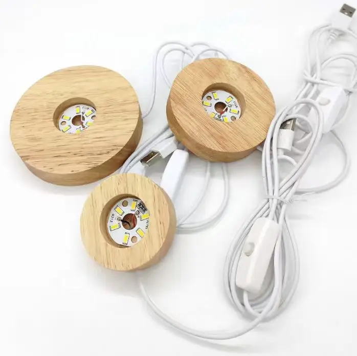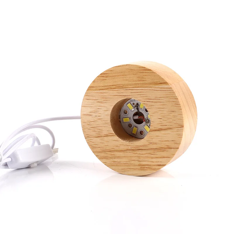 RGB Rubber Wood 60/80*20mm LED Colorful Lights Base Wooden Round Lighted Base for Crystal Ball