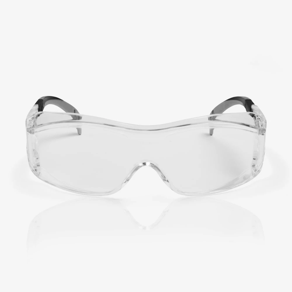Safety spectacle. Singlepiece polycarbonate frame suitable for over-spectacle use · · · Can be worn over spectacles · · Ventilated temple tips and side shields · · Brow protection · · Anti-fog lens · · UV400 protection · · Ideal to be worn by site visitors