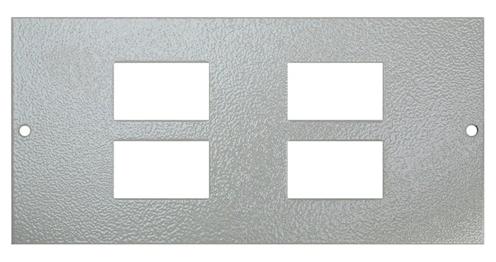 The RJ45 / LJ6C data outlet plate for floor box is a versatile and durable solution for providing data access in a variety of commercial and residential settings. It is designed to be used with 3-compartment floor boxes and can accommodate up to 6 RJ45 or LJ6C data modules. This makes it ideal for use in offices, schools, hotels, and other environments where multiple users need to be able to connect to a network. · · · 4 way LJ6C data plate · · Made from galvanised steel · · Leatherette texture power coated Galvanised Steel · · Light grey RAL 7035 · · LJ6C Modules sold separately