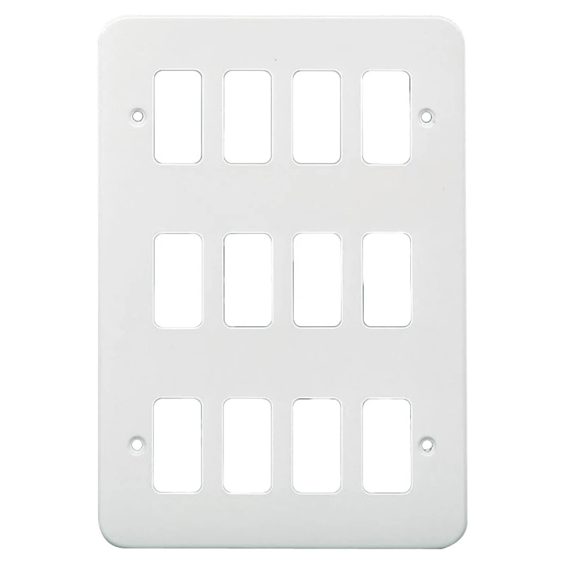 Technical Specifications  Technical Specifications Cover plate for wiring accessories Width 137 mm Number of units/gangs 1 Number of gangs 12 Number of modules vertical (module system) 12 Height 197 mm Depth 5 mm With hinged lid No Label space/information surface Yes Suitable for floor box No With mounting grid No Flush-mounted installation Yes Suitable for wall duct No Suitable for built-in installation Yes Transparent No Halogen free Yes