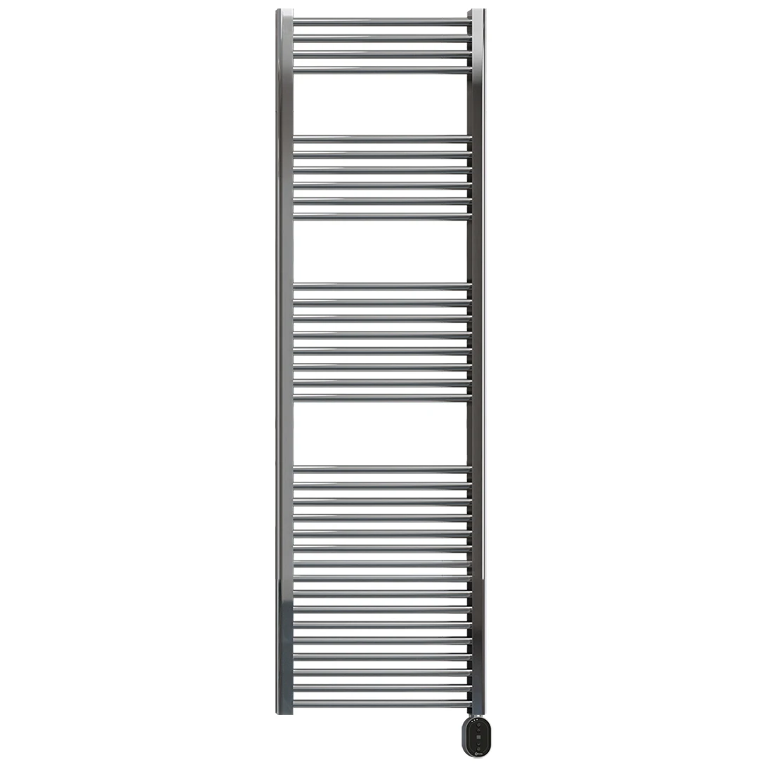 The Elba Oval electric towel features the Rointe Oval control panel with 6 preset temperature modes, so you can choose the best temperature to suit your needs and the towel rail will keep your bathroom temperature even and efficient as programmed. It’s the new, convenient smart heating solution. The Elba Oval electric towel rail offers warmth and comfort with a modern design and a maximum power mode. It has a high-quality steel body for vertical installation with cylindrical bars and is fluid-filled for faster heat-up times. You can also program your Elba Oval towel rail easily using one of the Rointe remote controls: AIR or BASIC (sold separately). · · · 6 preset temperature modes · · LED consumption indicator · · Maximum power mode · · Compatible with Rointe remote controls (sold separately) · · High-quality steel body with vertical installation · · High heat transfer thermal fluid · · Manufactured according to CE standards · · Polished chrome finish · · Modern design · · Class II protection and IP44 rated