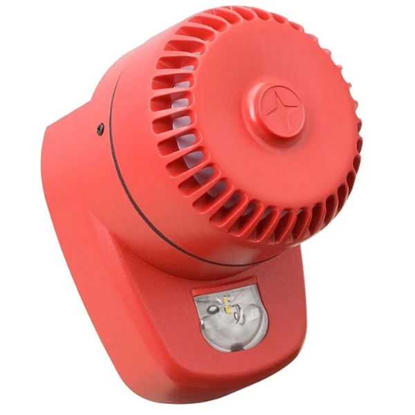 Technical Specifications Technical Specifications Optical/acoustic signal device Type of acoustic signal device Siren Current type DC Type of optical signal Flash light Mounting method Surface mounting Housing colour Red Light source type LED Degree of protection (IP rating) IP65 Type of acoustic signal Pulse tone/continuous tone Power 0.672 W With contact No Frequency sound signal 2.85 – 2.85 kHz Nominal voltage 28 – 28 V Coverage volume 135 m³ Power consumption in standby mode – W Sound level 102 dB Electricity consumption 0.028 A Suitable for wall mounting Yes Suitable for ceiling mounting No Compatible with Apple HomeKit No Compatible with Google Assistant No Compatible with Amazon Alexa No IFTTT support available No According to EN 54-23 Yes · Technical Data Sheet – Click to Download
