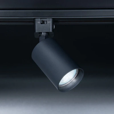Rosco GU10 Track Fitting Black · · · 3 Year Warranty · · GU10 LED Only · · 6W LED Max · · 1 Circuit – KSR Track Fitting · · Can be made 3 Circuit via KSR Track adaptor · · On / Off Switch · · Class I · · IP20