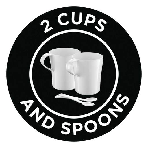 Includes two cups and spoons, which can be stored inside the kettle | Universal dual voltage | 1000W | Dual water level windows | Power-on neon indicator | Hinged lid for ease of filling | Boil dry protection | Removable, washable anti-scale filter | 230V | Cable length: 0.61m | Corded | Heat resistant handle & housing | Steady grip rubber feet