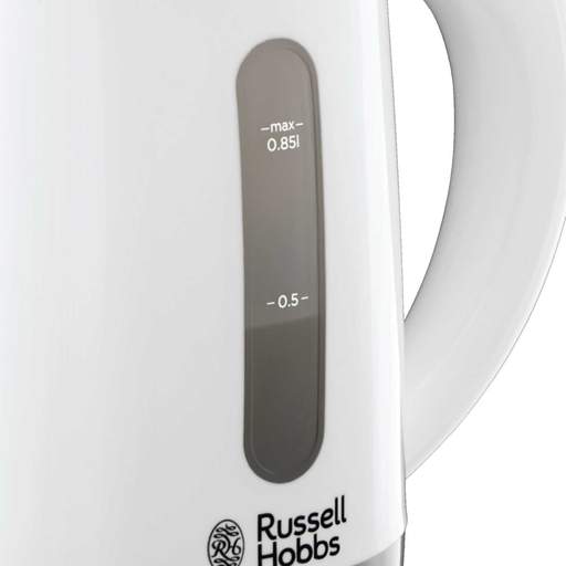 Brand: Russell Hobbs | Boil Dry Protection: Yes | Capacity: 0.85L | Colour: White | Cord Length: 0.61m | Cordless: No | Guarantee: 3 Years | Logistics Partner: NONE | Manufacturer Reference: 23840 | Material: Plastic | Online Delivery Only: No | Packaged Weight: 0.7274kg | Packaging Types: Each | Power Rating: 1000W | Product Dimensions: (H)181 mm x (W)120 mm x (D)188 mm | Punchout: No | Safety Lock: No | Similar Stock: No | Unspsc V13: 52141523 | Unspsc V18: 52141523 | Unspsc V22: 52141523 | Unspsc V24: 52141523 | Voltage Rating: 230V | Water Gauge: Yes | Water Level Window: Yes