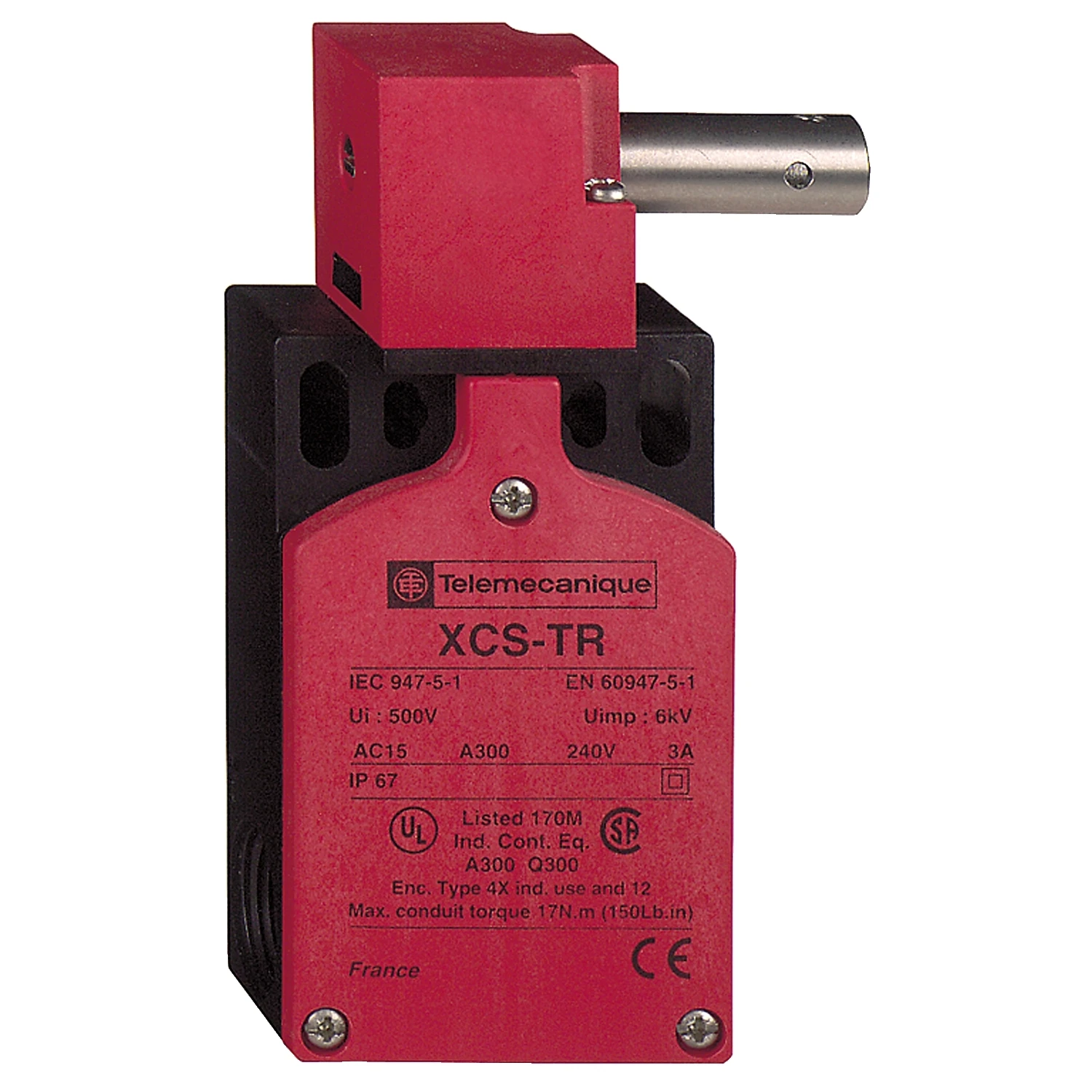 This XCSTR Safety Limit Switch has a 30 mm stainless steel spindle, a double insulated plastic enclosure and 2 x M16 cable gland entries. It has 1 normally open and 2 normally closed break-before-make (slow break) contacts. Its B10D reliability data is 5 000 000. Its IP67 degree of protection makes it ideal for heavy duty use in harsh conditions. It also complies with EN/ISO 14119, EN/IEC 60204-1, EN/IEC 60947-5-1, EN/IEC 60947-5-4, UL 508, CSA C22.2 No 14 standards. When associated and correctly connected to an appropriate safety control unit, it conforms to Category 4, performance level PL e, SIL 3 as described in EN/ISO 13849-1, EN/IEC 61508. · · · This XCSTR Safety Limit Switch has a 30 mm stainless steel spindle, a double insulated plastic enclosure and 2 x M16 cable gland entries. · · It belongs to linergy passthrough terminal block with 6 mm² nominal cross section. · · It has 1 normally open and 2 normally closed break-before-make (slow break) contacts. · · The rated current is 41A conforming to EN/IEC 60947-7-1, 50A conforming to CSA/cURus and 40A conforming to ATEX Exe II Ex II 2 GD. · · It has grey surface treatment.