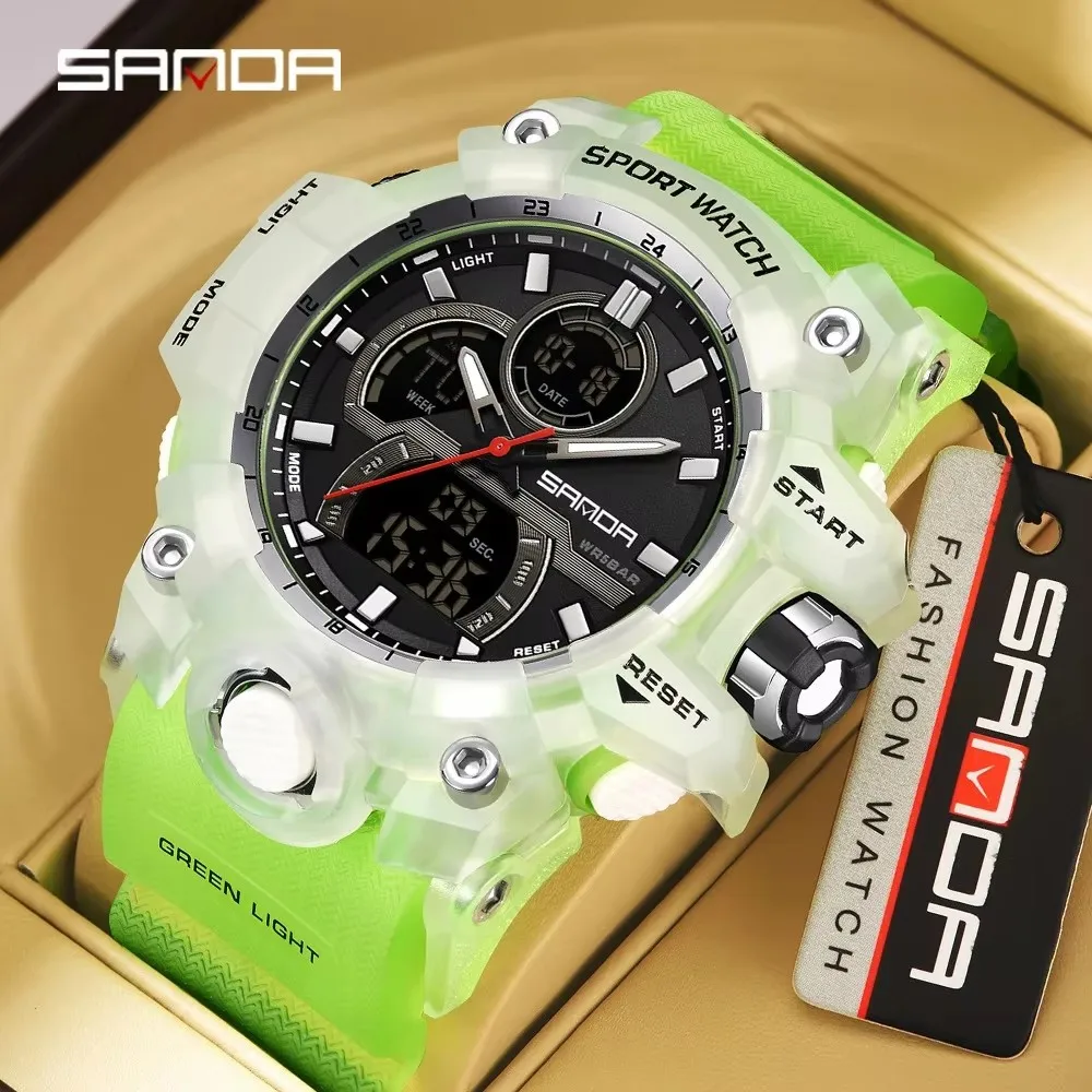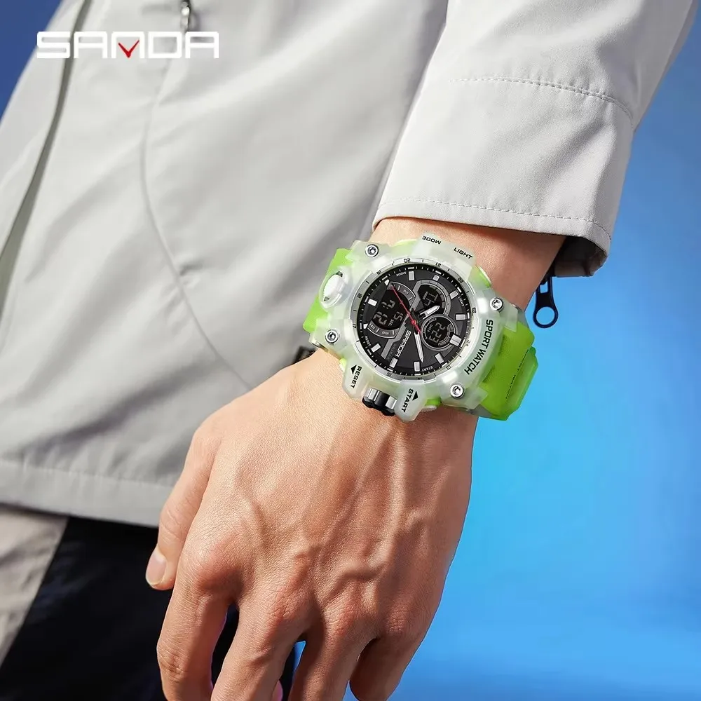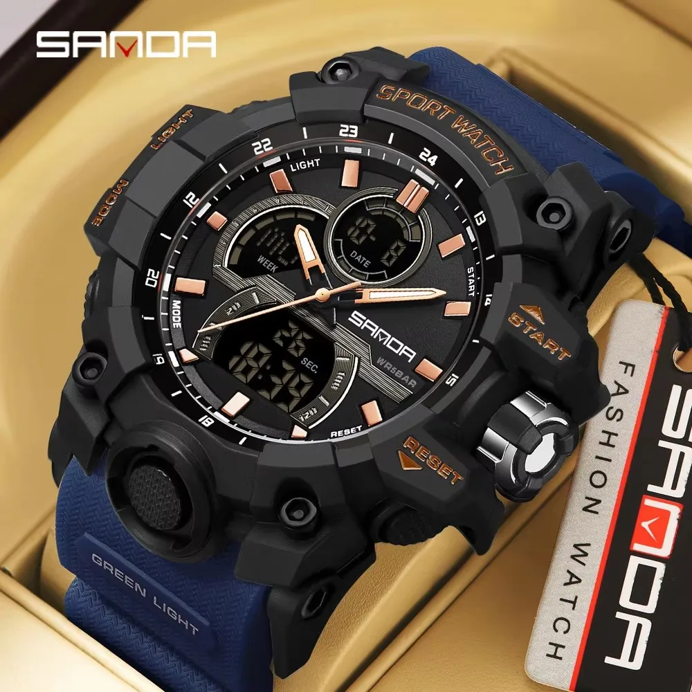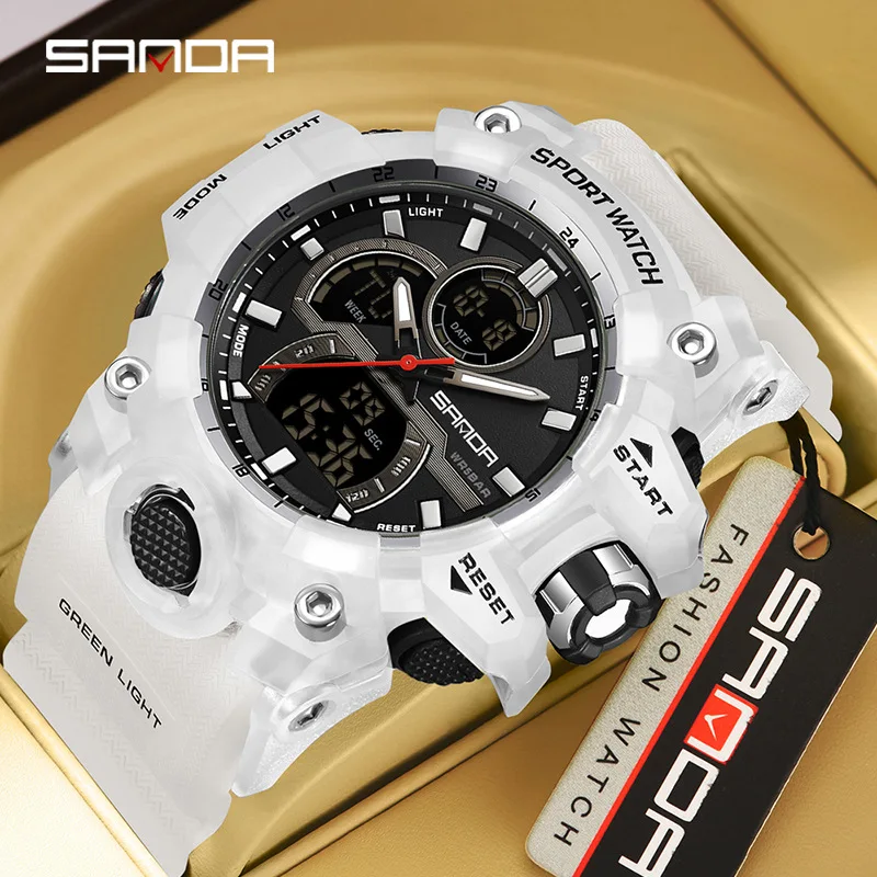 SANDA Sport Watch for Men Alarm Clock Stopwatch LED Digital Back Light Dual Time Display Men Watch Quartz Waterproof Wrist Watch