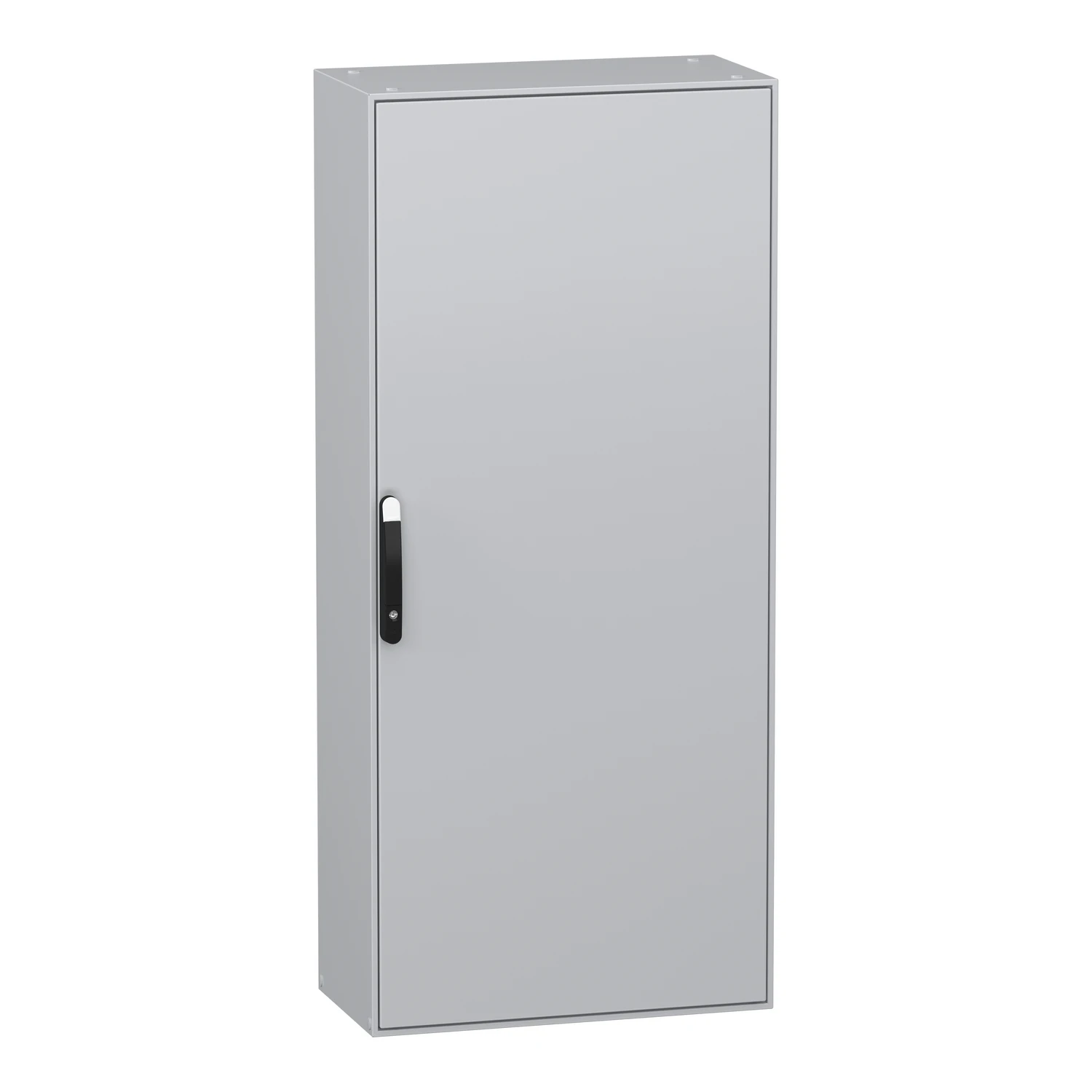 Spacial SM compact enclosure with mounting plate, 1800x800x400mm. range: Spacial – product name: Spacial SM – product or component type: compact enclosure – device application: multi-purpose – installation accessory type: floor-standing – device composition: 1 body, 1 cable gland plate, 1 door, 1 locking system with handle for door, 1 mounting plate, 4 mounting plate bracket – removable parts: door fixed by screws for hinge, mounting plate bracket fixed by screws, mounting plate fixed by screws for mounting plate bracket – enclosure nominal height: 1800 mm – enclosure nominal width: 800 mm – enclosure nominal depth: 400 mm. · · · Spacial SM monobloc compact steel enclosure with plain front door. · · 1800 x 800 x 400 mm. · · Back panel welded, mounting plate included. · · 4 point door locking system with handle DB 5mm. · · Sheet steel, galvanized steel for mounting plate. · · Protection IP 55, IK10, Grey RAL 7035. · · 4 mounting plate support brackets included.