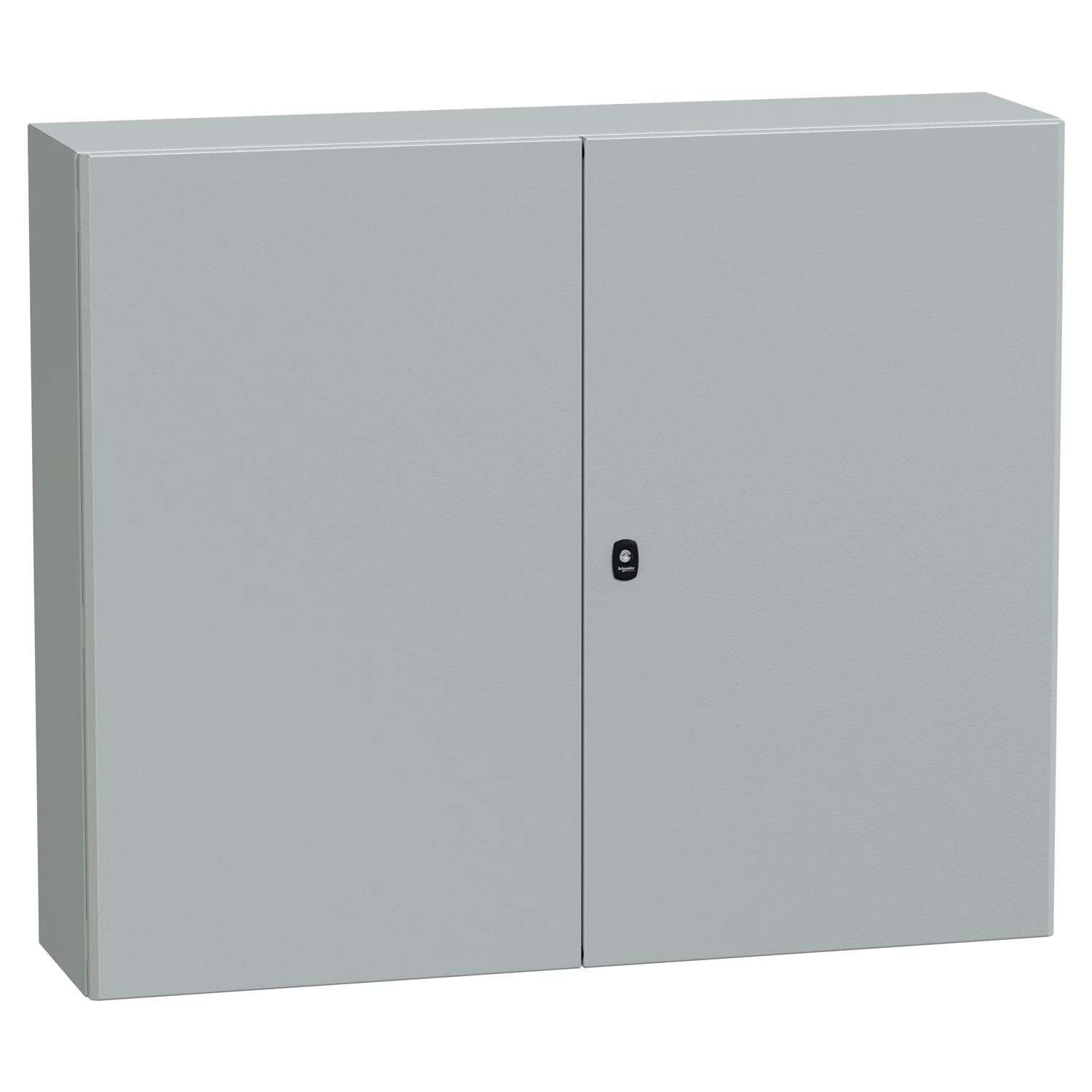 Spacial S3D wall mounted steel enclosure with 2 plain doors. 1000 x 1200 x 300 mm. Single piece body, mounting plate included. 3-point closure system with handle and 3 mm double bar lock insert. Steel made, epoxy-polyester powder finish. Protection IP 55, IK10, Grey RAL 7035. · · · Spacial S3D wall mounted steel enclosure with 2 plain doors. · · 1000 x 1200 x 300 mm. · · Single piece body, mounting plate included. · · 3-point closure system with handle and 3 mm double bar lock insert. · · Steel made, epoxy-polyester powder finish. · · Protection IP 55, IK10, Grey RAL 7035.
