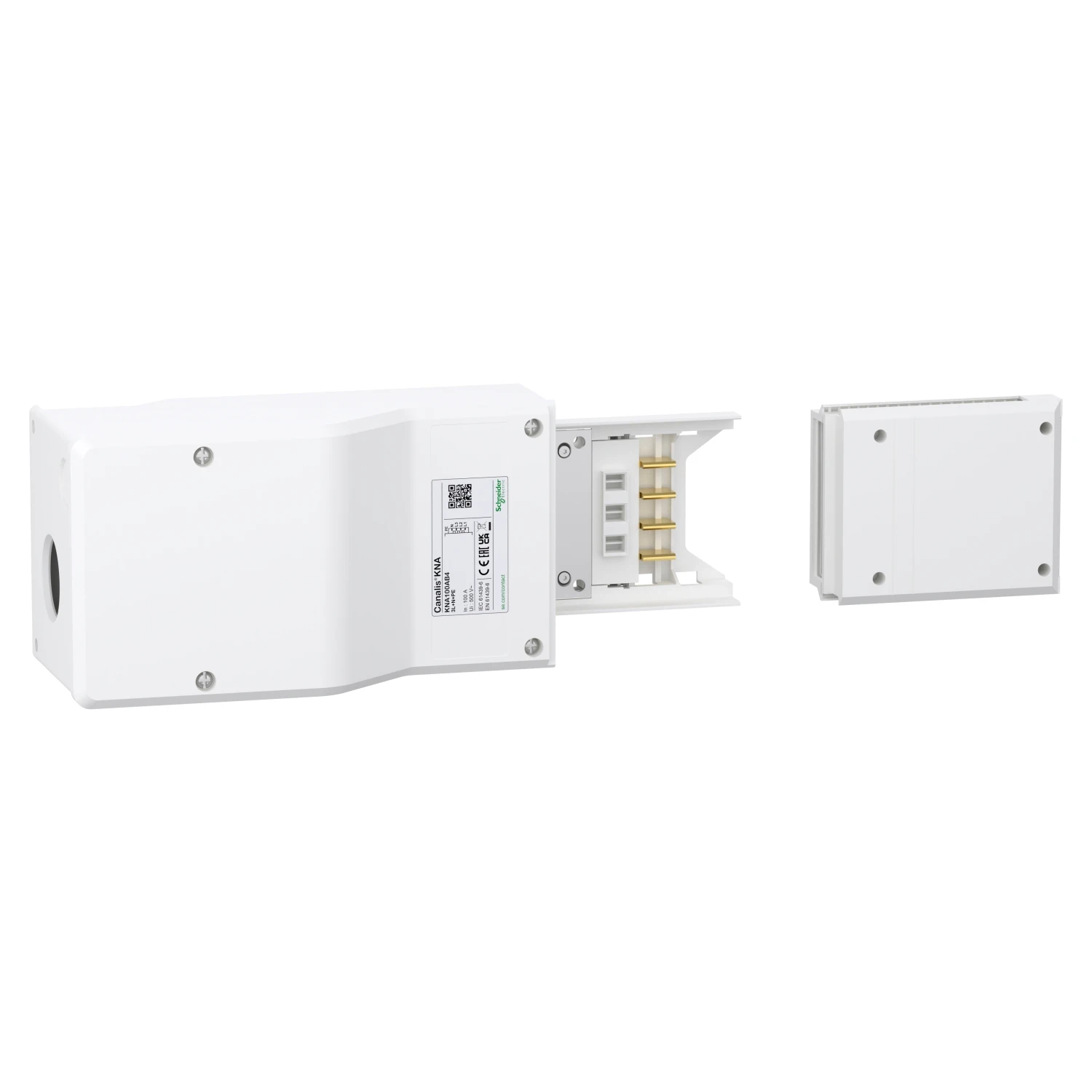 Canalis feed unit for KNA. The rated operational voltage is from 230VAC to 500VAC. The rated operational current is 100A. The bar material of feed-unit is aluminium with white RAL 9001 surface treatment. Busbar mounting by clips on left or right side of trunking, connection by lug terminals. Designed with 1 circuit allowing. It provides end cover. It provides IP55 protection conforming to IEC 60529. IK08 conforms to IEC 62262. It is compliant with both IEC 60439-2 and IEC 61439-6. It is also compliant with Green Premium (RoHS/REACH). · · · Canalis feed unit for KNA. · · The rated operational voltage is from 230VAC to 500VAC. · · The rated operational current is 100A. · · The bar material of feed-unit is aluminium with white RAL 9001 surface treatment. · · Busbar mounting by clips on left or right side of trunking, connection by lug terminals. · · Designed with 1 circuit allowing. · · It provides end cover.
