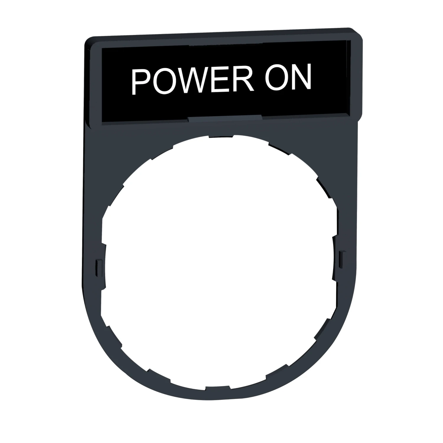 This Harmony ZBY legend holder has black or red background and is marked with -POWER ON- lettering. It is compatible with Harmony XB4, XB5 and XB7 push buttons and pilot lights. This legend holder allows you to customize the control unit with an engraved tag, in line with the design approved by your customer. It is compatible with any standard 22mm Harmony control or signalling unit. It provides clear and resilient symbol marking on the label, with high contrast. · · · This Harmony ZBY legend holder has black or red background and is marked with “POWER ON” lettering. · · It is compatible with Harmony XB4, XB5 and XB7 push buttons and pilot lights. · · This legend holder allows you to customize the control unit with an engraved tag, in line with the design approved by your customer. · · It is compatible with any standard 22mm Harmony control or signalling unit. · · It provides clear and resilient symbol marking on the label, with high contrast.