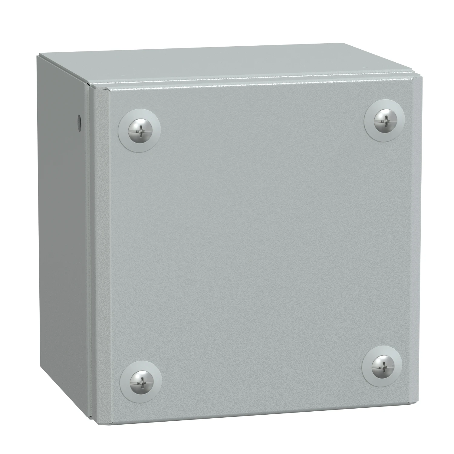 Metal industrial box plain door H150xW150xD120 IP66 IK10 RAL 7035. range: Spacial – product name: Spacial SBM – device application: multi-purpose – product or component type: industrial box – device short name: SBM – enclosure type: flat face box – enclosure nominal height: 150 mm – enclosure nominal width: 150 mm – enclosure nominal depth: 120 mm – device composition: 1 x body, 1 x cover, 4 x cover screw – body type: single piece body folded and welded – cover fixing: half turn metal screw. · · · Industrial box for Spacial SBM. · · Multi purpose. · · 150 x 150 x 120 mm. · · Flat face box. · · Wall mounted on enclosure. · · Single piece body folded and welded. · · Cover fixing with half turn metal srew. · · Cover by 4 captive screw PZ2 outside sealed area. · · Made sheet of stee with polyester powder finish. · · Protection IP 66, IK10.