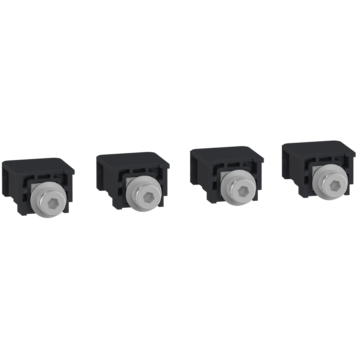 NSXm Compression lug for 4P · · · It is a set of 4 compression lugs/busbar connectors for Compact NSXm devices. · · They are used for a direct connection of insulated bares/cables or for a terminal extension. · · It offers a wide range of connection possibilities. · · These terminals are captive nuts with M6 screws. · · The current range is 15 to 160 A.