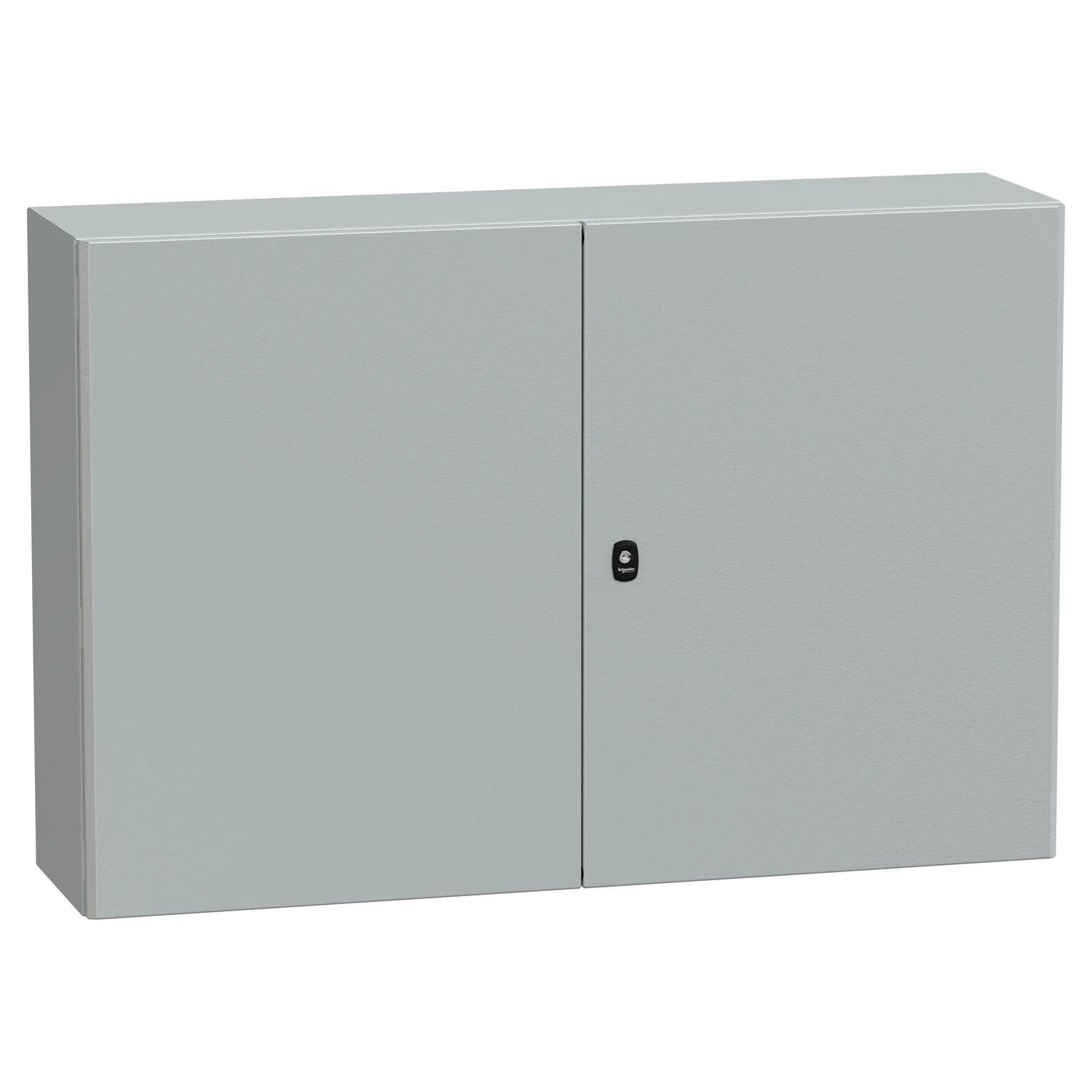 Spacial S3D dble plain door with mount.plate. H800xW1200xD300.IP55 IK10 RAL7035. · · · Wall-mounting enclosure with epoxy-polyester powder surface finish. · · Reversible doors (up to 120°) for easy access to internal equipment. · · Removable doors, cable gland plates, and mounting plate for maintenance. · · Single-piece body and gutter-shaped front rail double sheet thickness. · · Accessibility only from the front. · · Suitable for multi-purpose applications even in harsh environments. · · Three-point lock and 3mm double-bar insert for enhanced security.