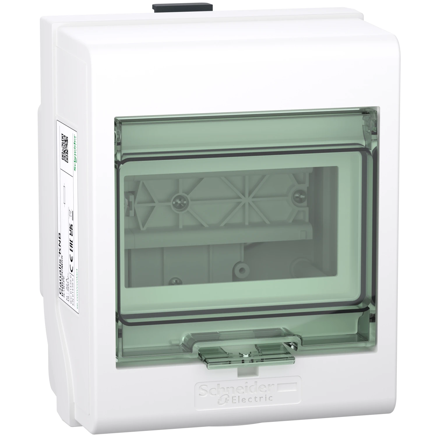 Canalis tap off unit for KN. It is compatibility with Canalis KN busbar trunking with plug-in outlets. The rated operational voltage is from 230VAC to 500VAC 50/60Hz depending on protective device. The rated operational current is 32A. It provides miniature circuit breaker (MCB) protection and 5 modules of 18mm. Mounting by plug-in with fixed polarity. The tap-off unit polarity is 3L+N+PE, disconnection by drawing out. Door/cover could be open front side. It is suitable for TT, IT and TN-S earthing system. It provides white RAL 9001 surface treatment. Blanking plate could be provided, but circuit breaker to be ordered separately. It provides IP55 protection conforming to IEC 60529. IK08 conforms to IEC 62262. It is compliant with IEC 61439-1 and IEC 61439-6. It is also compliant with Green Premium (RoHS/REACH). · · · Canalis tap off unit for KN. · · It is compatibility with Canalis KN busbar trunking with plug-in outlets. · · The rated operational voltage is from 230VAC to 500VAC 50/60Hz depending on protective device. · · The rated operational current is 32A. · · It provides miniature circuit breaker (MCB) protection and 5 modules of 18mm. · · Mounting by plug-in with fixed polarity. · · The tap-off unit polarity is 3L+N+PE, disconnection by drawing out. · · Door/cover could be open front side. · · It is suitable for TT, IT and TN-S earthing system. · · It provides white RAL 9001 surface treatment.