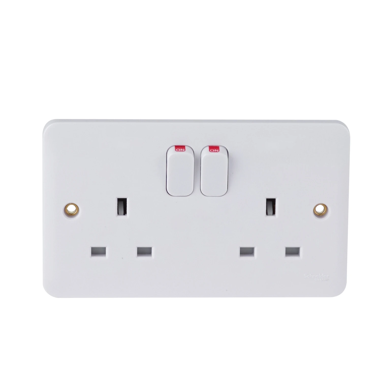 Schneider Socket 2 Gang Switched Optional LED 13A White