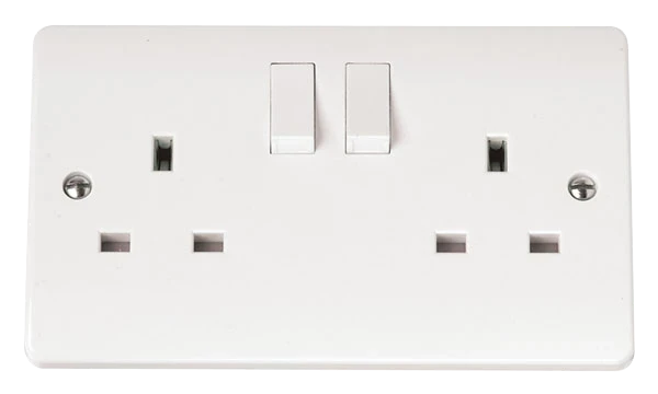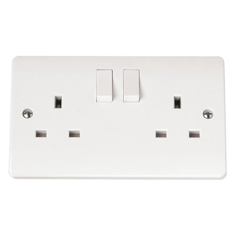 CMA036 13A whiteSocket, 2 Gang DP Switched · · · Manufactured according to BS 1363-2:1995+A4:2012 standards · · 4 x 2.5mm² cable size · · KM10807 Kitemark Licence