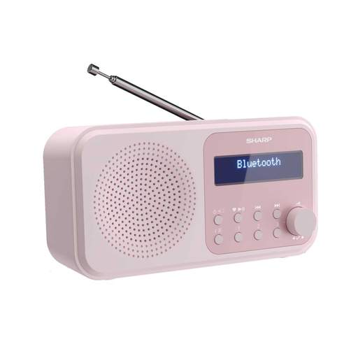 Portable digital radio with DAB, DAB+ & FM tuner with RDS & memory for 40 stations (20 DAB+/DAB & 20 FM); automatic station search; digital radio TICK-certified | Flexible USB; FM 87.5 to 108 MHz, DAB 174 to 240 MHz; efficient DAB+ technology offers very good reception & a wide range of stations | Wireless music streaming via Bluetooth 5.0, headphone input (3.5 mm AUX) for private music enjoyment; alarm clock (alarm or radio) with snooze function; sleep timer automatically switches off the radio when needed; dimmable LCD display with automatic time & date display | Blossom Pink plastic speaker cabinet with telescopic antenna; 7 system languages EN/DE/ES/FR/IT/NL/PL