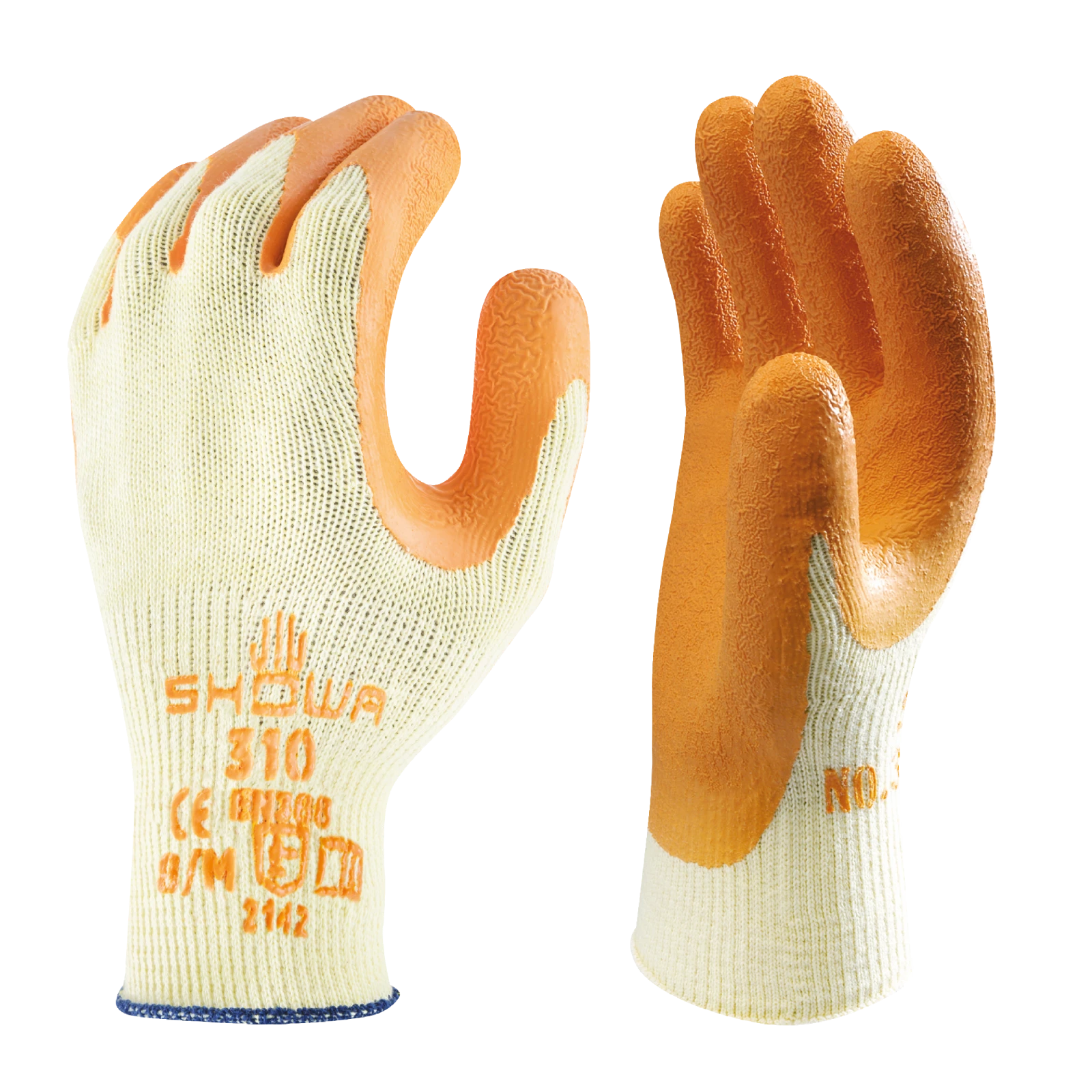 Showa 310 Grip Orange Latex Coated Grip Gloves – 9/L