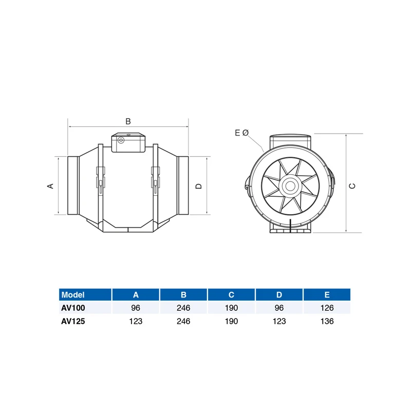 Shower Fan Kit Aventa In-Line Timer 100mm