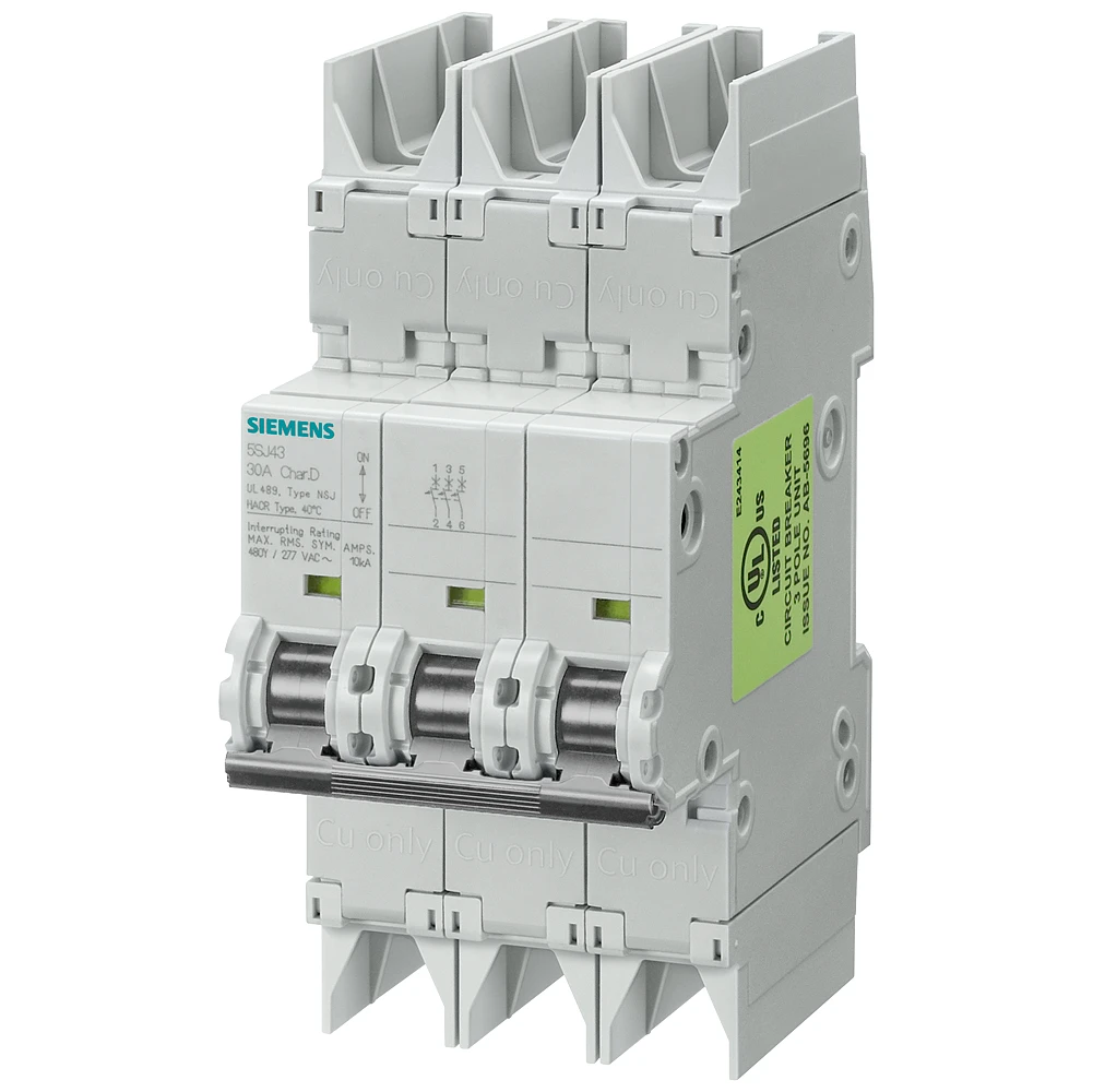 Circuit breaker 10kA, 3-pole, C, 10 A according to UL 489-480Y/277V The miniature circuit breaker is the fuse for short-circuit protection. The miniature circuit breakers from Siemens, as an important component of the SENTRON protective components for electronic installations, provide effective protection for personnel and plants by reliably shutting down in the event of an overload or short-circuit. User-friendly mounting and connection technology, standardized additional components and an integrated design – these are the characteristics of the device family. Whether for infrastructure or for industrial requirements, Siemens provides miniature circuit breakers for all applications and every application area. The Siemens miniature circuit breakers are characterized primarily by: 1. Effective personnel, investment and plant protection against overload and short-circuits. 2. A wide variety of standardized accessories, easy to install and replaceable at any time. 3. Reliable safety during installation due to standard reach-around and touch protection. 4. Clearly visible switch position indicator. 5. The data matrix code on the front of the device provides quick and easy access to information on all aspects of miniature circuit breakers. 6. Protection as per the standards with worldwide approvals.
