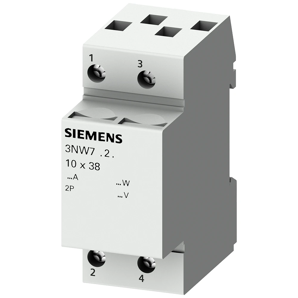 SENTRON, cylindrical fuse holder, 10×38 mm, 2-pole, In: 32 A, Un AC: 690 V SENTRON cylindrical fuse system for selective line protection. Siemens cylindrical fuse-links and fuse holders are suitable for use in industrial plants. They are standard in Europe and are tested and approved as fuse disconnectors, but not for switching under load. For load switching, Siemens offers an extensive portfolio of products, e.g. 3KF. The Siemens cylindrical fuse systems are characterized primarily by: 1. Compliance with the standards IEC 60269-1, -2 and -3. 2. Compliance with the standard UL 512. 3. Fast fuse change due to space for spare fuses in the slide-in unit. 4. Fast detection of a tripped fuse due to LED that flashes when the fuse trips. &DPMD_ACC602_001_000_1004330&