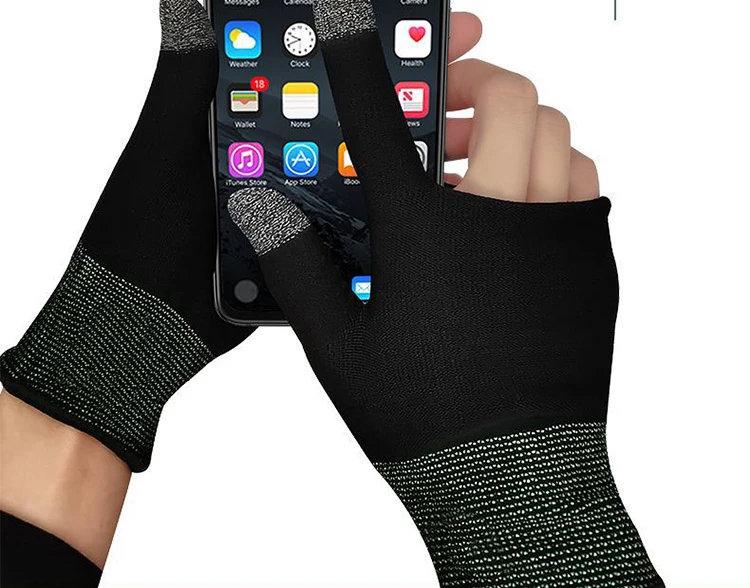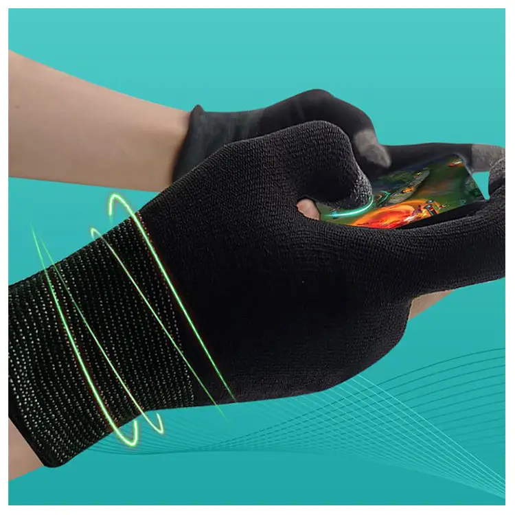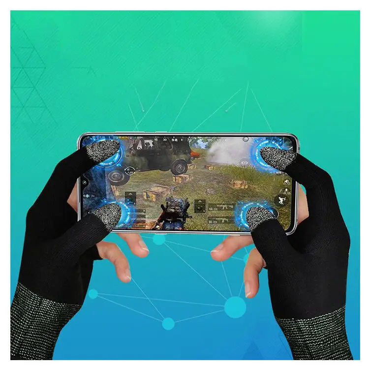 Product Description Silver Fiber Polyester Gaming Gloves Thumb Controller Anti-Slip Touch Screen Breathable Anti-Static Anti-Heat PUBG Hand Play Specificationgame controller sweatproof gloves Material nylon+Silver Fiber Color black Usage scenarios All occasions Logo Silk screen /Heat transfer printing